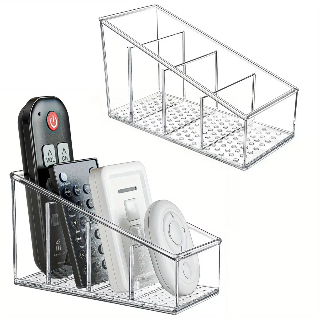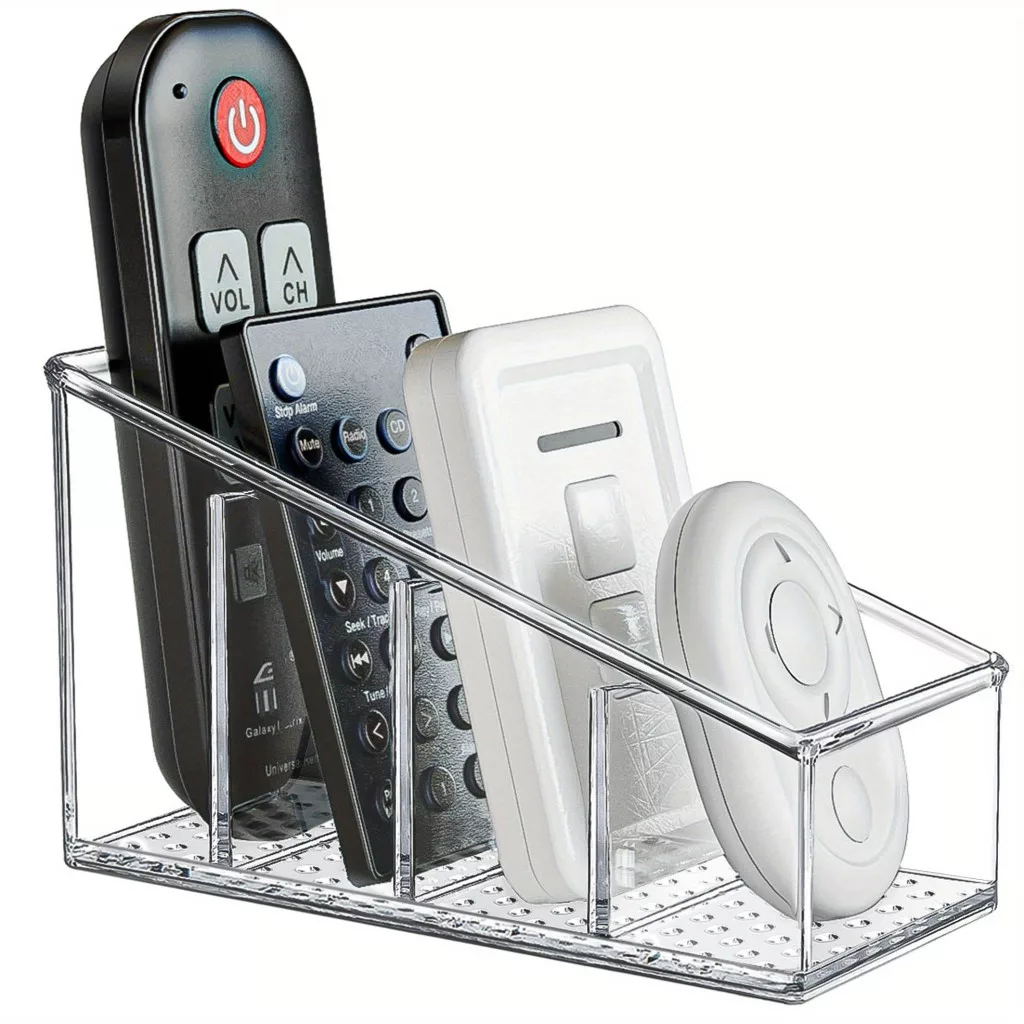 Suport transparent din plastic pentru telecomandă, organizator de birou cu 4 compartimente