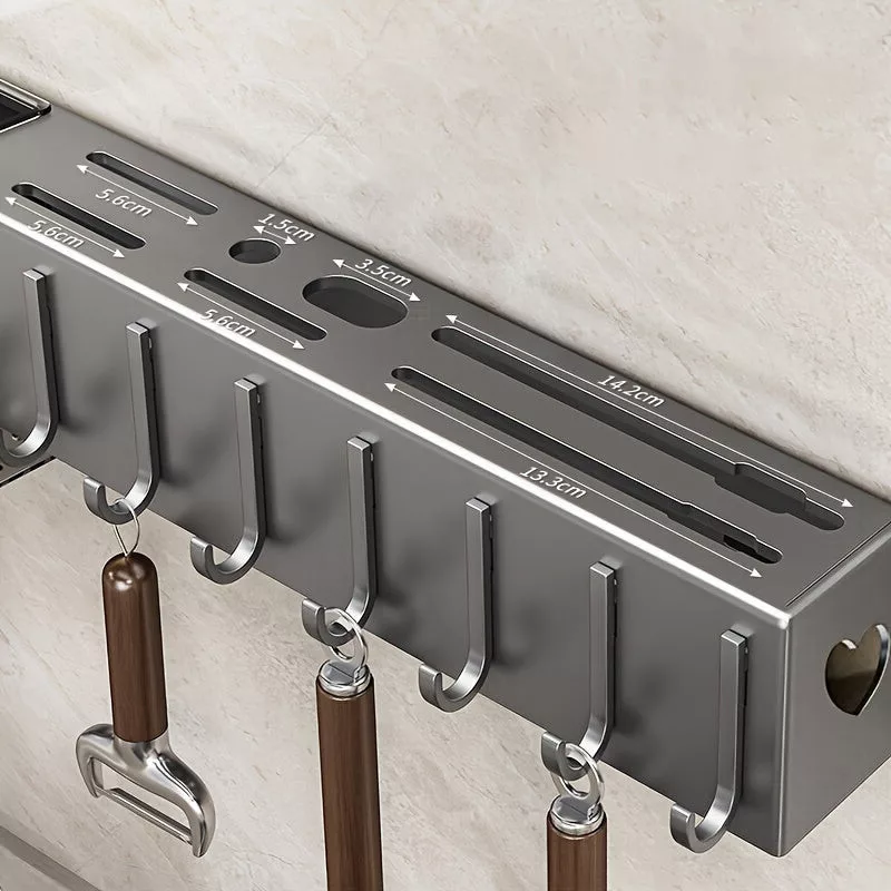 • Dispunerea cârligelor: Cârlige rearanjabile: Poți personaliza sistemul de depozitare conform nevoilor tale, astfel încât toate ustensilele să fie la îndemână.