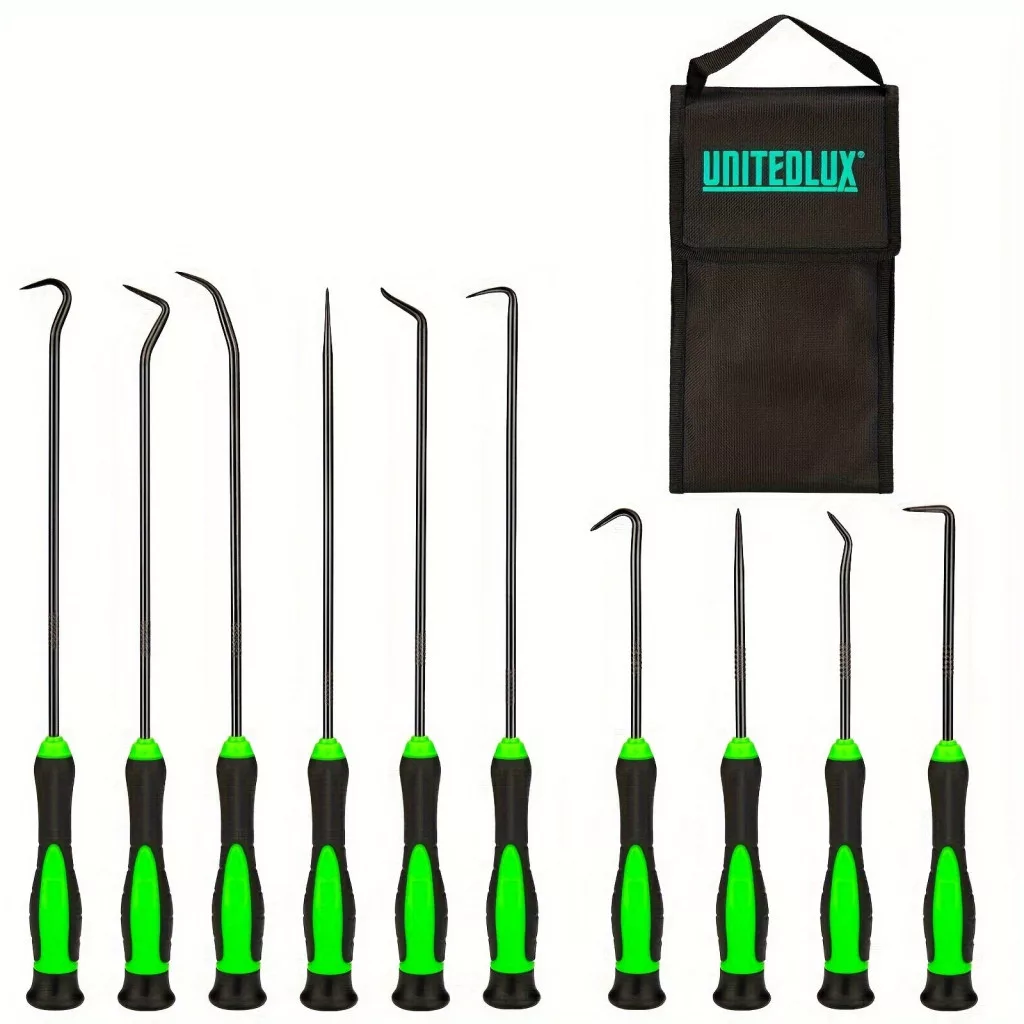 Descoperă setul de pensete și cârlige de precizie, proiectat special pentru lucrările auto. Acest set de 10 piese este alegerea ideală pentru înlocuirea garniturilor de ulei auto și alte sarcini de asamblare fină. Formele variate ale pensetelor și cârligelor îți permit să ajungi în locurile greu accesibile, astfel încât fiecare lucrare să fie realizată rapid și eficient. Fabricate din materiale de înaltă calitate, aceste unelte sunt durabile și rezistente la rugină, devenind partenerii tăi de încredere pe termen lung în lucrările de asamblare.