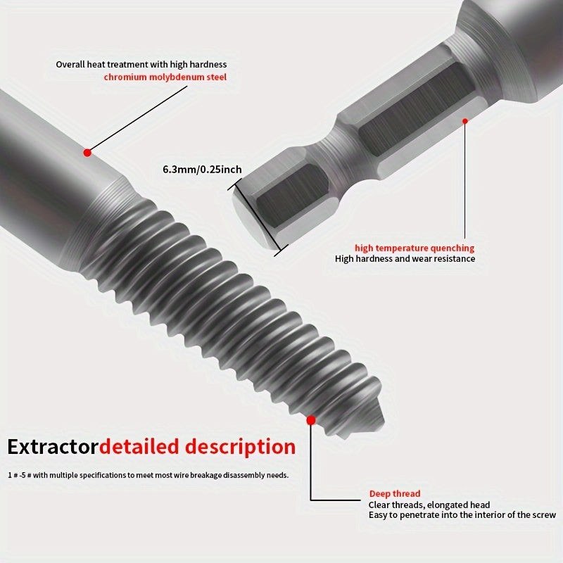 Descoperă experiența frustrantă a șuruburilor deteriorate, când toate încercările par să eșueze. Însă, aici este soluția! Setul de extragere a șuruburilor, cu burghie pentru șuruburi deteriorate, este visul oricărui pasionat de bricolaj. Acest set este special conceput pentru a îndepărta cu ușurință șuruburile deteriorate, uzate sau blocate, scutindu-te astfel de stresul inutil și pierderea de timp.