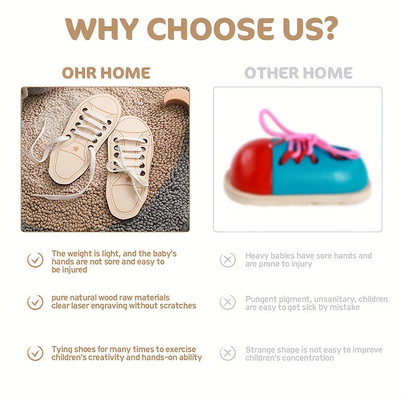(Experiență de învățare) Jocul educativ pentru șireturi de pantofi este deosebit de util pentru copiii de vârstă preșcolară care încep să exploreze lumea. Jocul ajută la dezvoltarea coordonării mână-ochi, în timp ce copiii se bucură de lumea culorilor și formelor. Fabricat din materiale durabile, jocul asigură o durată lungă de viață, astfel încât copiii să poată reveni la el de fiecare dată pentru a-și exersa și perfecționa abilitățile.