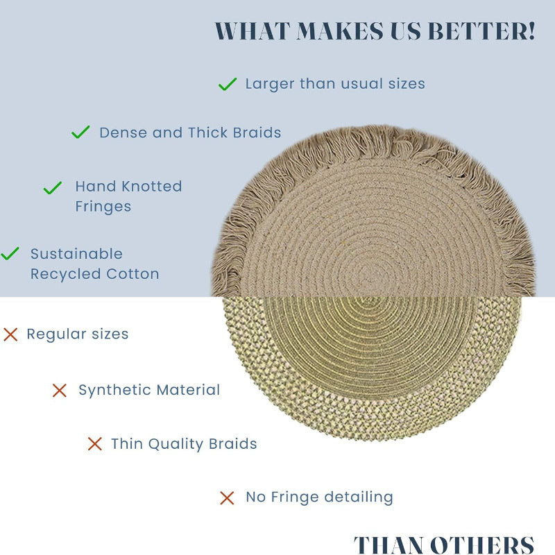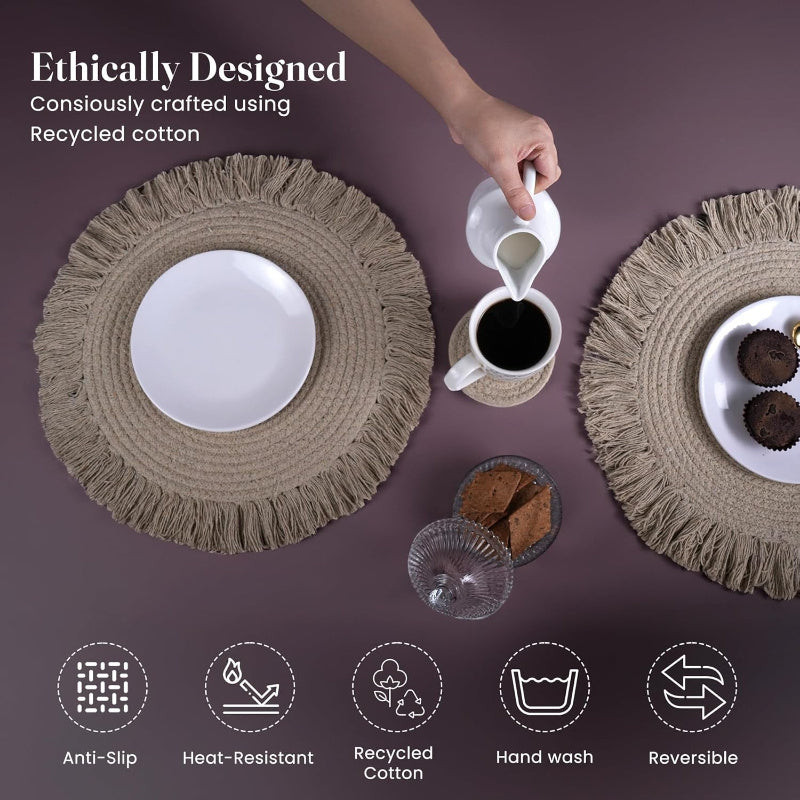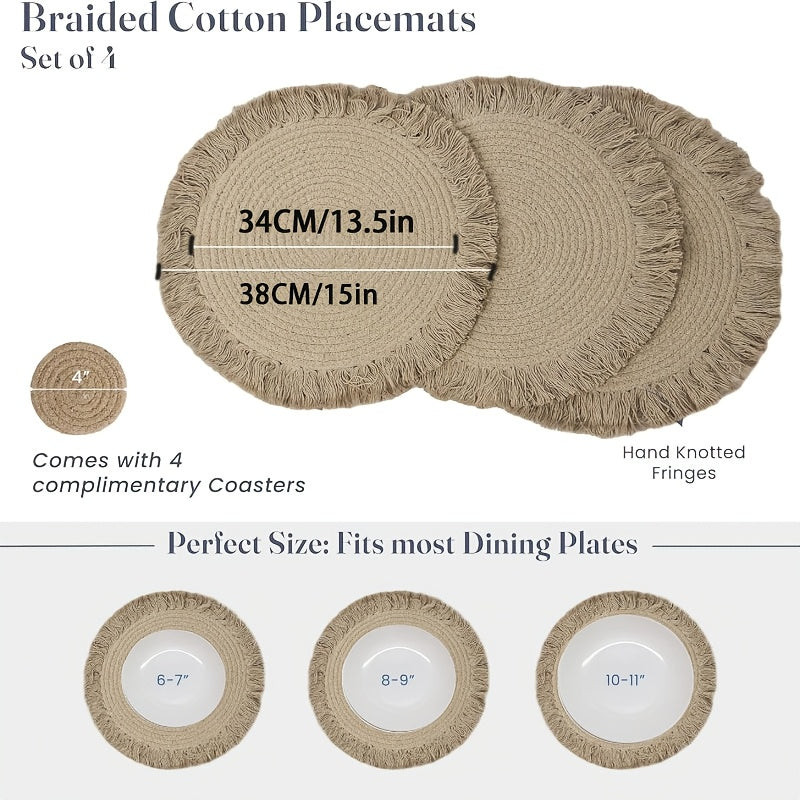 • Dimensiuni ideale: Suporturile sunt de dimensiuni ideale pentru a se potrivi confortabil sub orice farfurie și pentru a proteja masa de murdărie și pete.