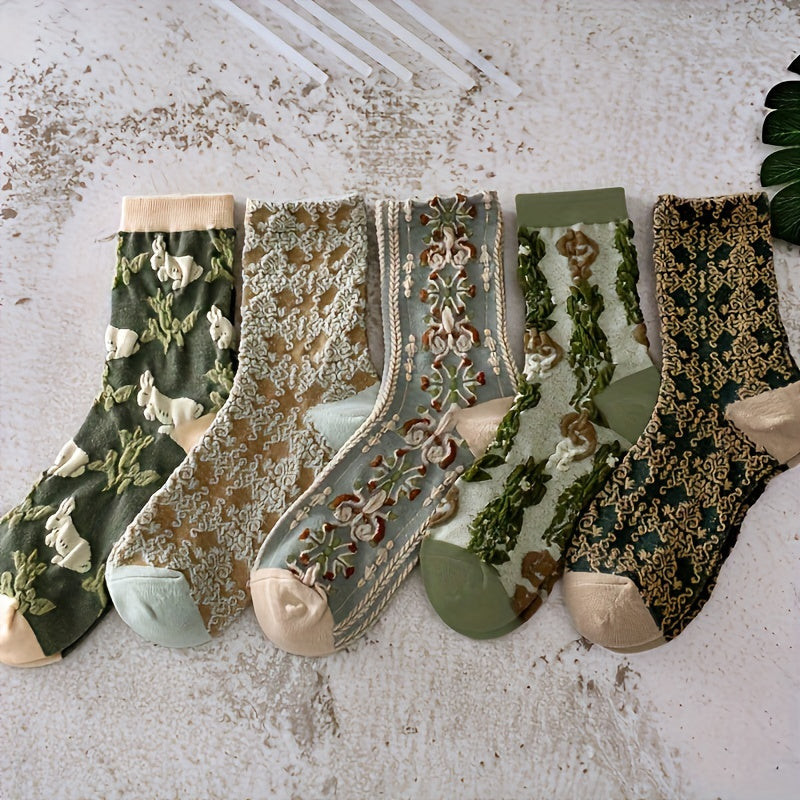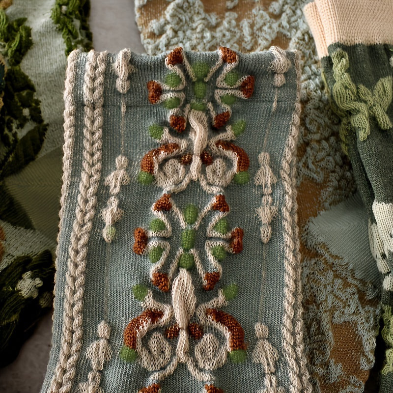 Îți transformă instantaneu ținuta! Șosetele cu model floral nu doar că îți oferă confort pentru picioare, dar devin și unul dintre cele mai captivante accesorii din garderoba ta. Acest set de cinci perechi de șosete cu model floral nu doar că îmbogățește paleta de culori a dulapului tău, dar adaugă și un stil unic fiecărei ținute. Culorile speciale și vibrante ale modelelor florale îți fac fiecare pas mai vesel, fie că este vorba de o zi obișnuită la muncă sau de un eveniment special.