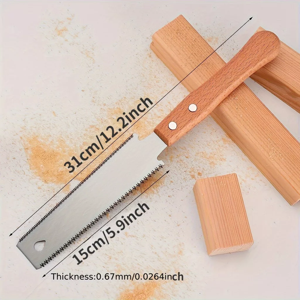 (Fierăstrăul tradițional japonez) Fierăstrăul manual japonez pentru prelucrarea lemnului este o adevărată capodoperă, care aduce precizia și eficiența meșteșugului tradițional japonez direct în casa ta. Acest fierăstrău lucrează cu o ascuțime și o precizie de neegalat, permițându-ți să obții tăieturi perfecte de fiecare dată. Datorită designului său special, fierăstrăul este ușor de manevrat, astfel încât chiar și începătorii îl pot folosi cu încredere pentru a obține rezultate profesionale. Lama fierăstrăului este interschimbabilă, asigurând o utilizare pe termen lung și permițându-ți să lucrezi mereu cu cel mai ascuțit instrument.