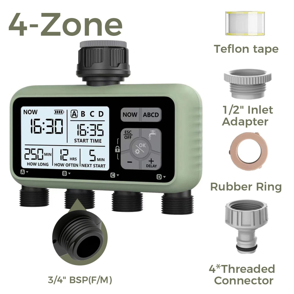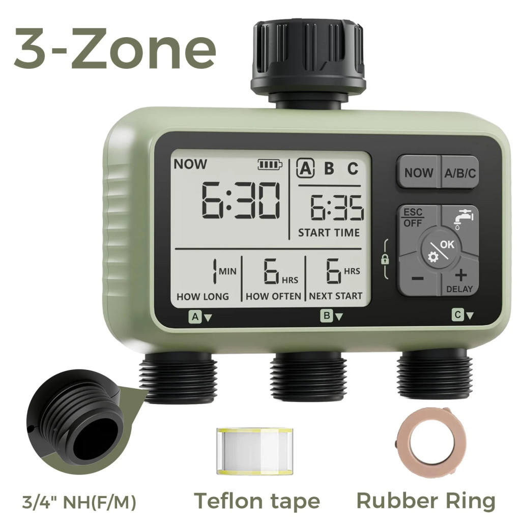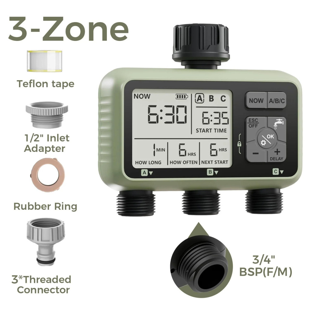 • (Zone programabile) Trei zone separate: Poți seta cu ușurință diferite nevoi de irigare, astfel încât fiecare colț al grădinii tale să primească atenția necesară.
