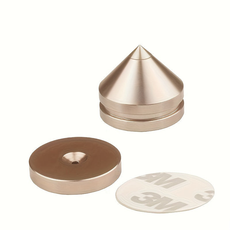 (Calitate premium) Materialele folosite în acest set reprezintă o investiție pe termen lung pentru iubitorii de sunet. Combinația de cupru și aluminiu nu doar că sugerează durabilitate, dar și eleganță, devenind astfel un accesoriu demn de orice set de boxe. Aceste țepi nu doar îmbunătățesc sunetul, ci și cresc stabilitatea boxelor, asigurându-ți o experiență de ascultare fără întreruperi.