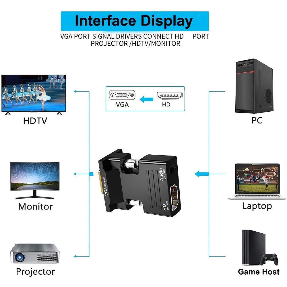 Dacă te-ai săturat ca vechile tale dispozitive să nu fie compatibile cu ecranele moderne, adaptorul convertor HDTV-VGA este soluția perfectă pentru tine. Acest dispozitiv nu doar că ușurează conexiunea, dar garantează și o calitate excelentă a imaginii și sunetului. Combinând rezoluția 1080P cu ieșirea audio de 3.5mm, ridică la un nou nivel atât divertismentul, cât și munca. Spune adio problemelor de conectare deranjante și descoperă o lume nouă a tehnologiei cu acest dispozitiv practic. Nu rata această oportunitate de a-ți extinde funcționalitatea dispozitivelor simplu și eficient!