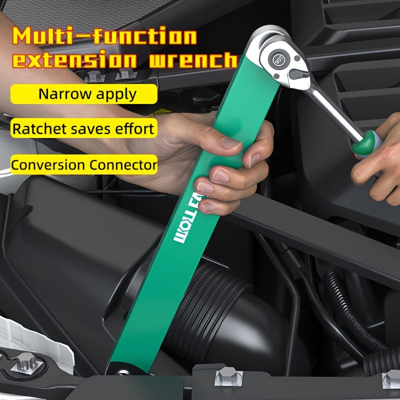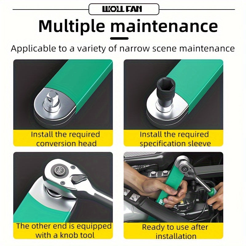 (Funcționalitate) Cheia cu clichet multifuncțională este una dintre cele mai mari inovații din lumea uneltelor, facilitând sarcinile zilnice de asamblare. Imaginează-ți că poți strânge sau slăbi șuruburi și piulițe de dimensiuni diferite cu un singur instrument! Această cheie cu clichet nu este doar alegerea perfectă pentru profesioniști, ci și pentru pasionații de bricolaj. Datorită designului practic, este ușor de transportat, așa că o poți lua cu tine oriunde ai nevoie de ea.
