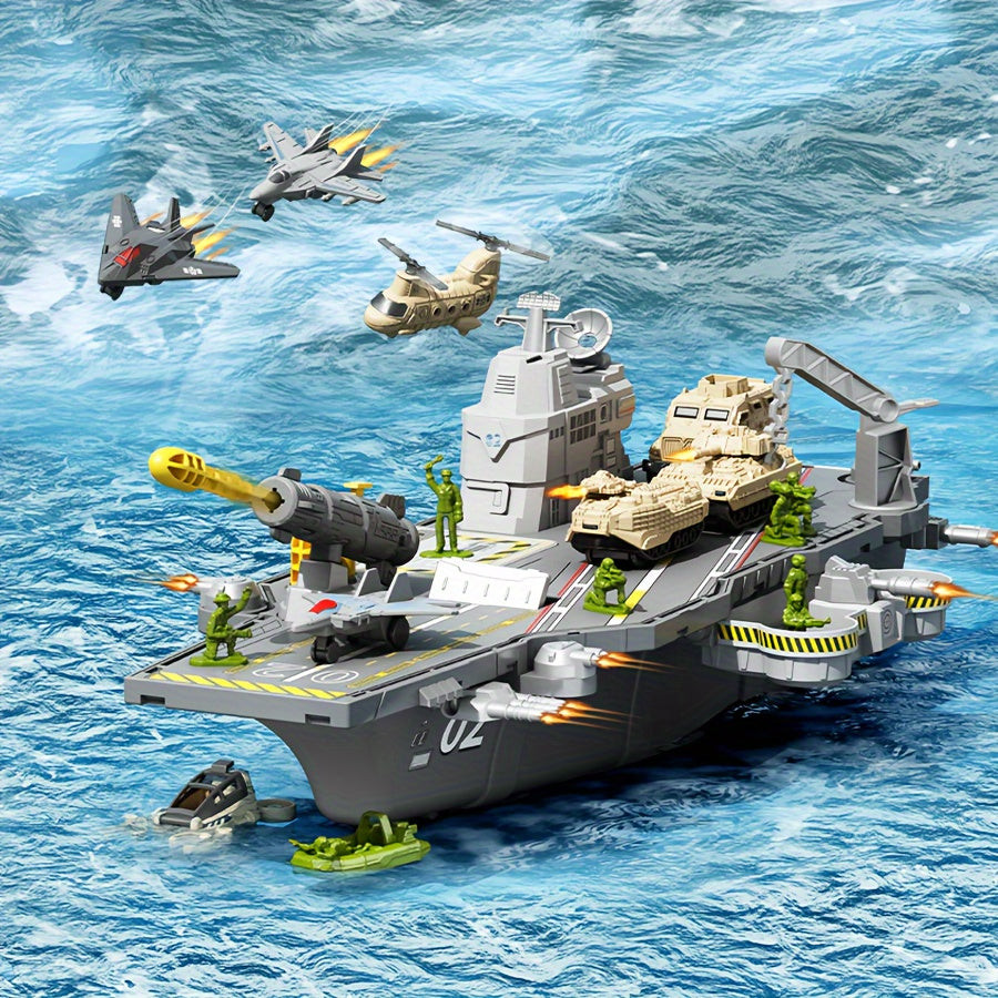 Portavion de jucărie pentru copii cu figurine militare de acțiune