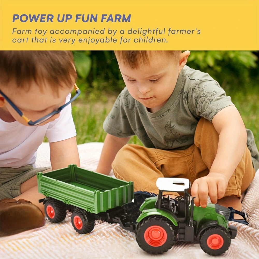 Set de joacă cu tractor verde și remorcă, cu mașină de fermier