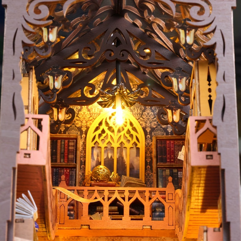 Colț de bibliotecă magic rustic din lemn