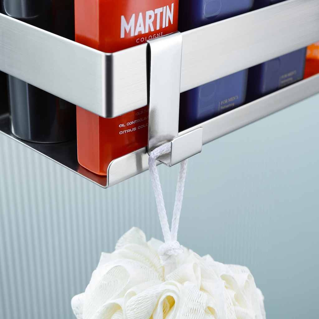 (Depozitare confortabilă) Descoperă organizatorul de rafturi pentru duș, soluția perfectă pentru a elimina haosul din baie. Această unitate de depozitare practică și stilată te ajută să menții ordinea în duș, astfel încât toate accesoriile tale necesare să fie la îndemână. Combinația de design modern și materiale durabile asigură că raftul își păstrează aspectul estetic pe termen lung.