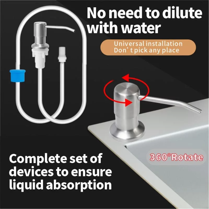 (Funcționalitate) Descoperă noua dimensiune a dozatorului de săpun pentru chiuvetă din oțel inoxidabil, echipat cu un tub prelungitor, pentru ca rutina ta zilnică în bucătărie să devină mai simplă și mai eficientă. Acest dozator de săpun nu este doar estetic, ci și practic, deoarece tubul prelungitor îți permite să acoperi distanțe mai mari, adaptându-se perfect oricărui mediu de chiuvetă.