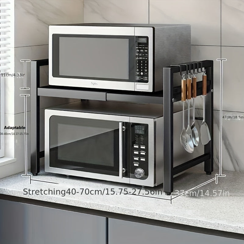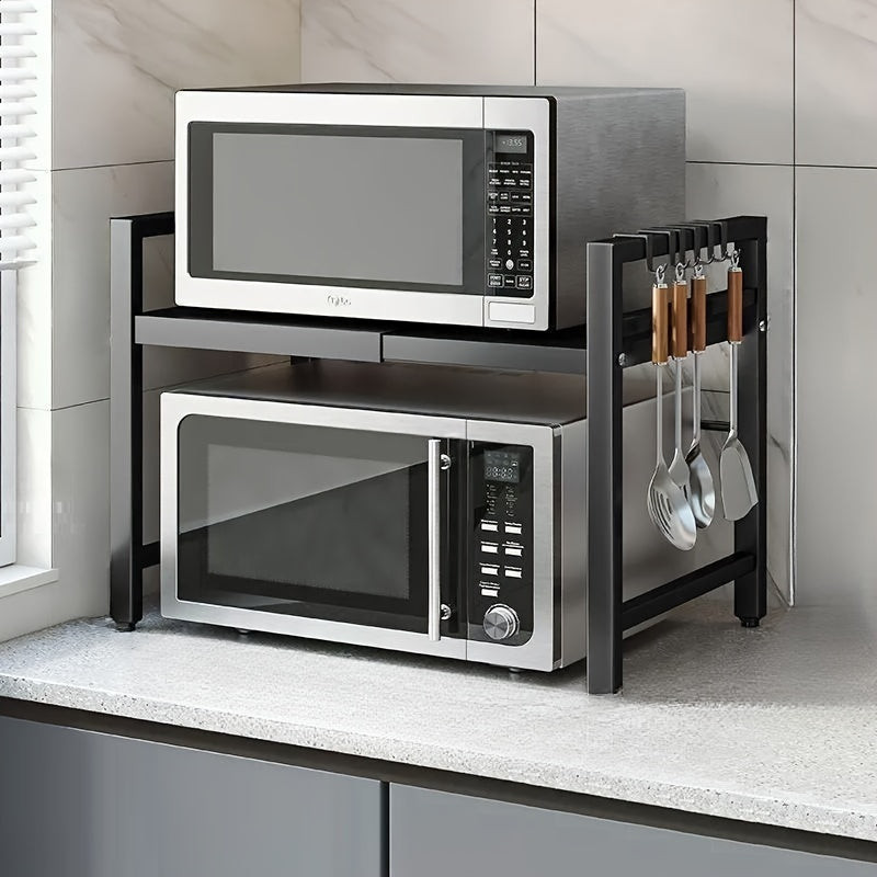 Descoperă o nouă dimensiune a optimizării spațiului din bucătărie cu suportul extensibil pentru cuptorul cu microunde! Acest suport nu doar că oferă un loc stabil și sigur pentru cuptorul tău cu microunde, dar îți oferă și spațiu suplimentar de depozitare pentru ustensilele de bucătărie. Designul său modern și elegant se potrivește perfect în orice bucătărie, în timp ce funcționalitățile sale practice îți ușurează treburile zilnice. Suportul se asamblează ușor, astfel încât să te poți bucura rapid și simplu de un aspect ordonat al bucătăriei tale.