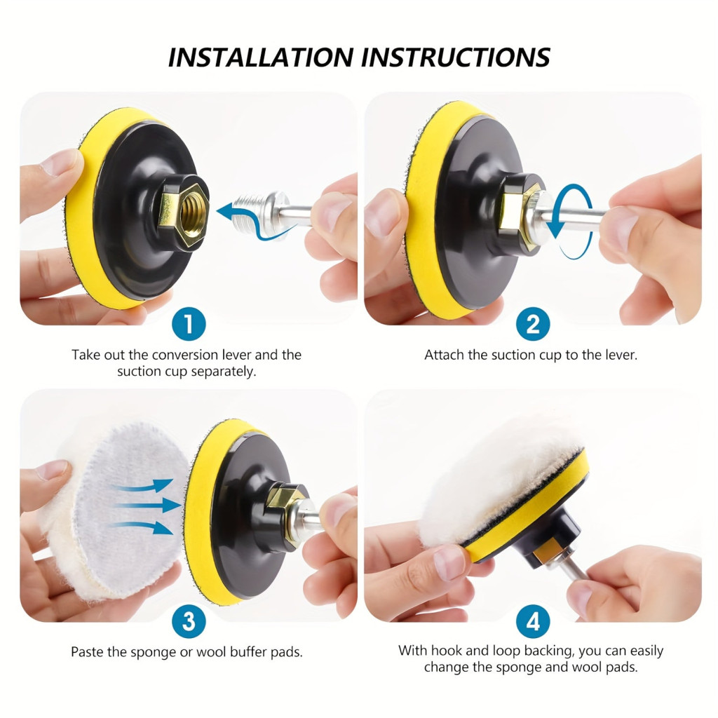 (Utilizare și avantaje) Pernele se atașează cu ușurință la orice burghiu standard, astfel încât să poți lucra rapid și confortabil. Datorită designului inovator, pernele nu zgârie suprafața și oferă un finisaj uniform și strălucitor. Materialele durabile asigură o durată lungă de viață, astfel încât să te bucuri de rezultate impecabile pentru mult timp. Descoperă plăcerea lustruirii și transformă-ți suprafețele cu acest set versatil!
