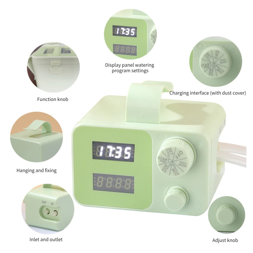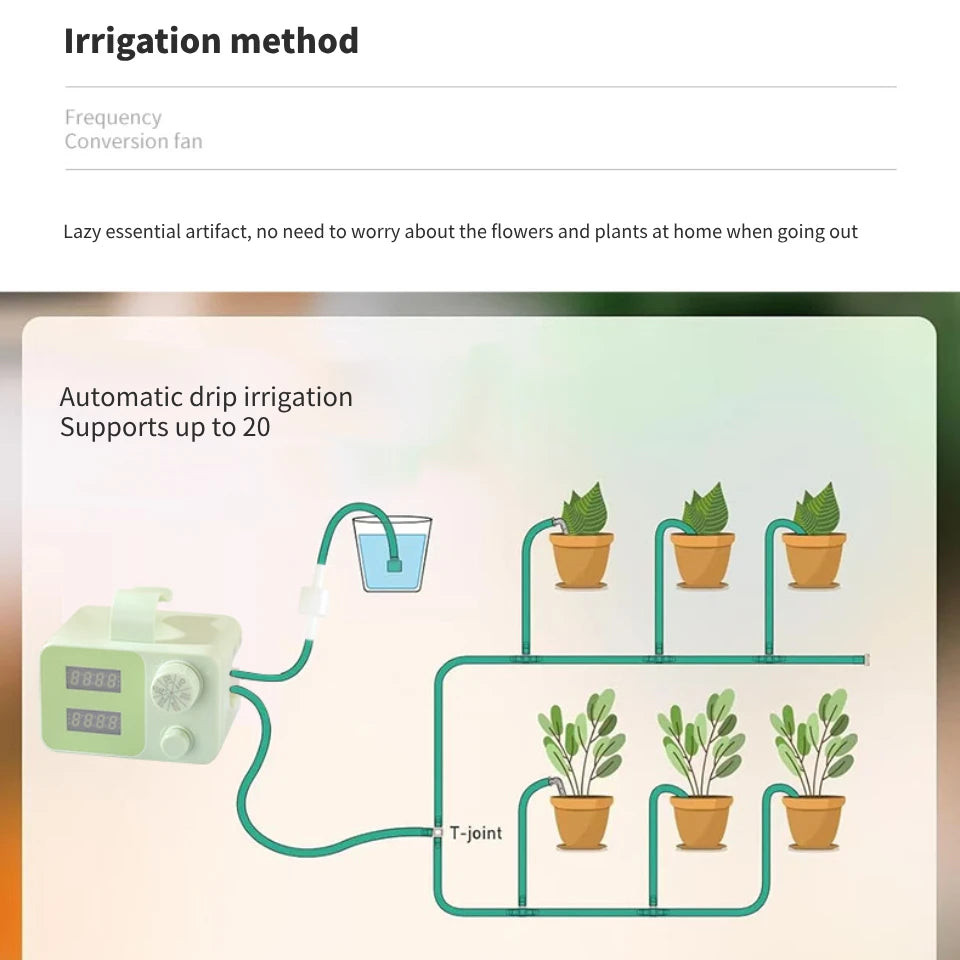 Descoperă lumea sistemelor de irigare automate cu acest aparat inteligent, care, datorită sistemului său de irigare programat, asigură o hidratare optimă pentru 20 de ghivece. În ritmul alert al vieții moderne, deseori uităm să ne îngrijim plantele, dar cu această soluție inovatoare nu mai trebuie să-ți faci griji. Aparatul are grijă automat de plantele tale, astfel încât tu să te poți bucura de timpul liber, în timp ce grădina ta se transformă într-o oază verde luxuriantă.