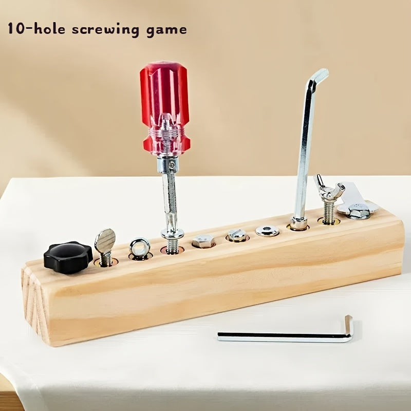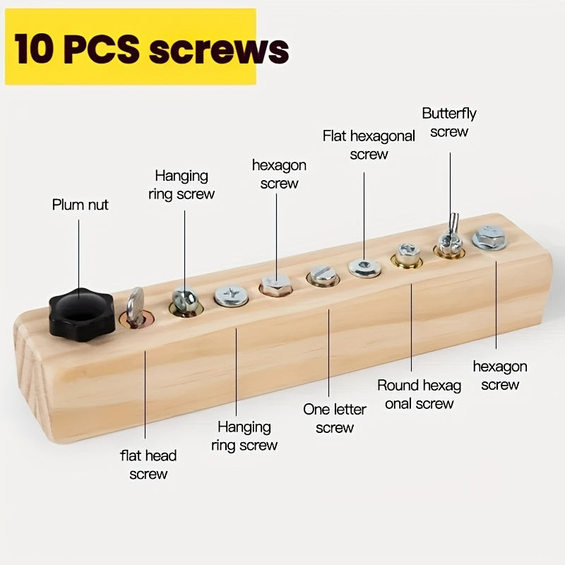 Joc de antrenament cu șurubelniță și șuruburi pentru copii mici, joc de înșurubare cu 10 găuri