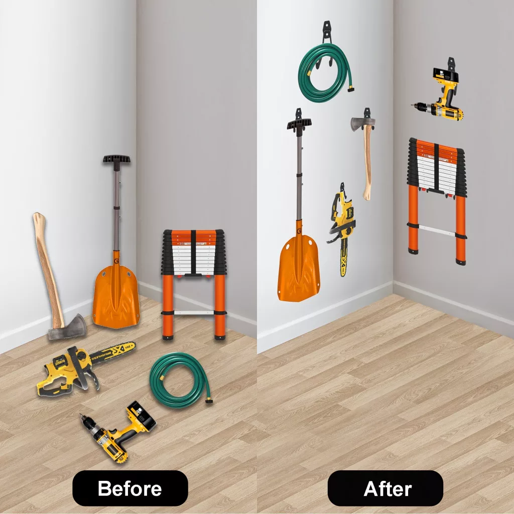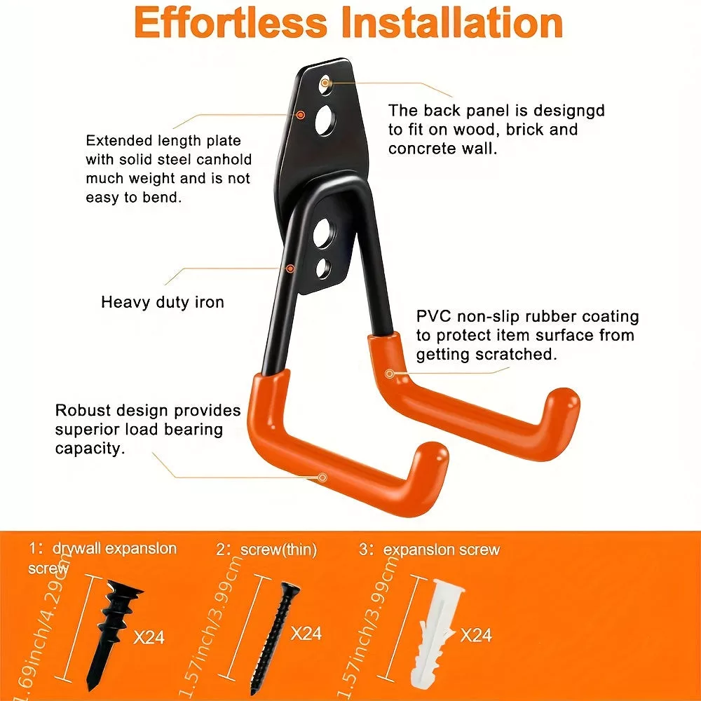 (Depozitare eficientă) Indiferent de dimensiunea garajului tău, aceste cârlige te ajută să maximizezi spațiul disponibil. Datorită materialului din oțel rezistent, pot susține greutăți mai mari, astfel încât poți depozita în siguranță obiectele mai grele. Nu lăsa dezordinea să-ți domine spațiul, alege soluția practică și de încredere!