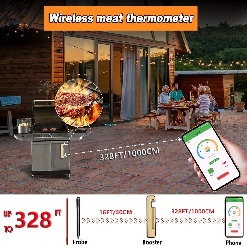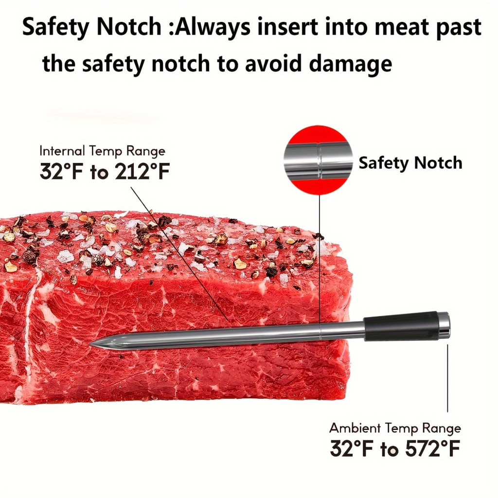 Utilizare simplă - Sonda metalică măsoară precis temperatura internă a cărnii, asigurându-te că mâncarea este întotdeauna gătită perfect. Fie că folosești grătarul sau cuptorul, acest termometru garantează rezultatul dorit. Datorită tehnologiei inteligente, dispozitivul se conectează ușor la smartphone-ul tău, permițându-ți să urmărești în timp real schimbările de temperatură.