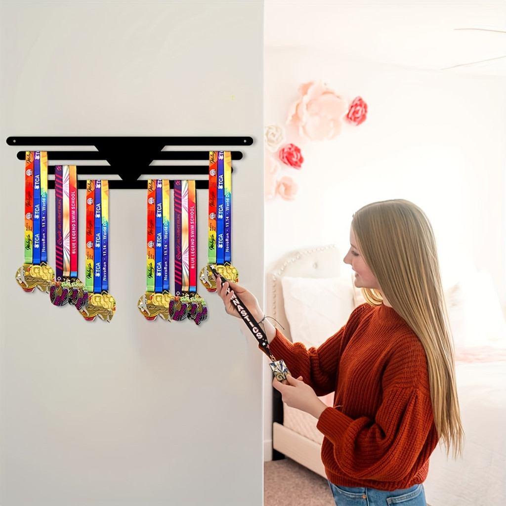 Descoperă suportul metalic pentru medalii, care nu doar că îți pune în valoare medaliile sportive, dar poate fi și un accesoriu stilat pentru orice încăpere din casa ta. Acest organizator multifuncțional pentru medalii și haine este alegerea ideală pentru sportivii care doresc să-și organizeze și să-și expună realizările. Designul suportului îți permite să ai acces ușor la medaliile și articolele tale preferate, oferind în același timp un aspect modern oricărei încăperi, fie că este vorba de sufragerie, bucătărie, birou sau chiar o verandă exterioară.