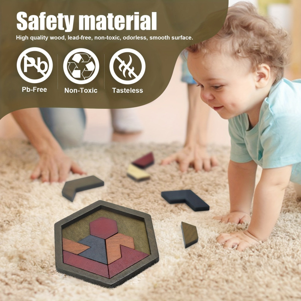 Puzzle Tangram hexagonal, joc de puzzle din lemn