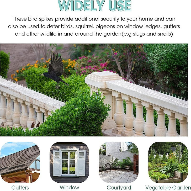 Aceste 2 bucăți de țepi transparente din plastic pentru alungarea pisicilor și păsărilor sunt ideale pentru garduri și pot fi folosite oriunde, atât în interior, cât și în exterior. Te ajută să ții departe porumbeii și veverițele, creând astfel un mediu liniștit. Nu necesită electricitate, fiind simplu și eficient de utilizat. Datorită materialului PVC, sunt ușoare și durabile.