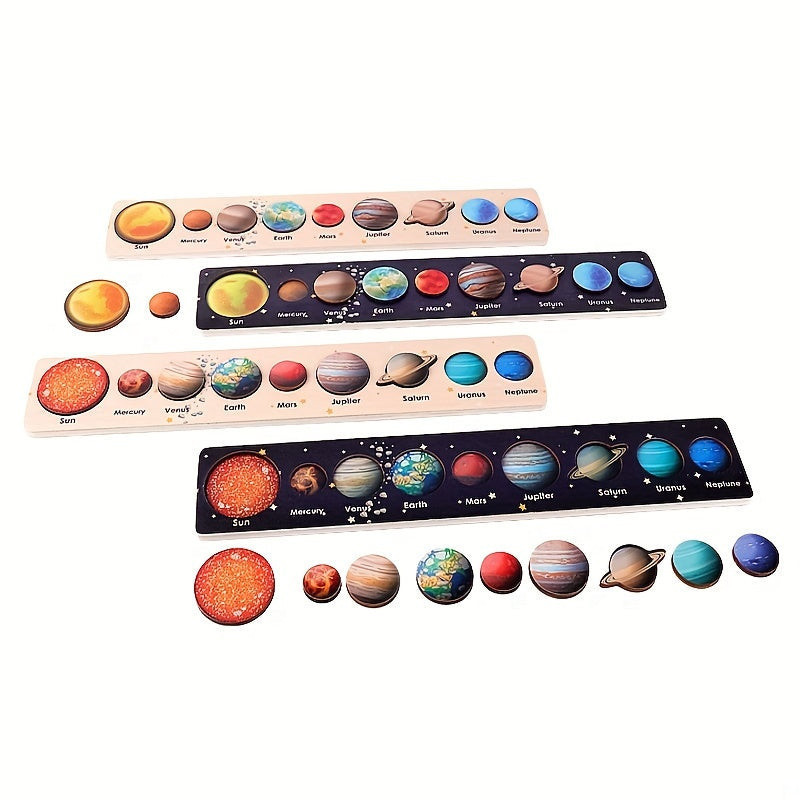 Puzzle-ul din lemn este creat special pentru tinerii oameni de știință și aventurieri ai spațiului! Puzzle-ul Sistemului Solar este o provocare captivantă care ajută copiii mici să-și dezvolte îndemânarea și gândirea logică. Cei mici vor adora designul colorat și detaliat, care îi ajută să înțeleagă structura Sistemului Solar.