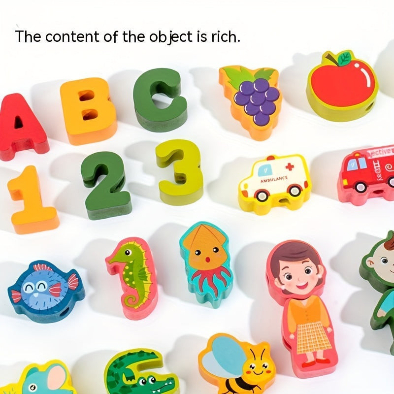 Această jucărie mică, cu mărgele mari și colorate, stimulează îndemânarea și creativitatea copiilor. Jucăria educativă cu mărgele din lemn este un instrument fantastic pentru dezvoltarea coordonării mână-ochi la cei mici!