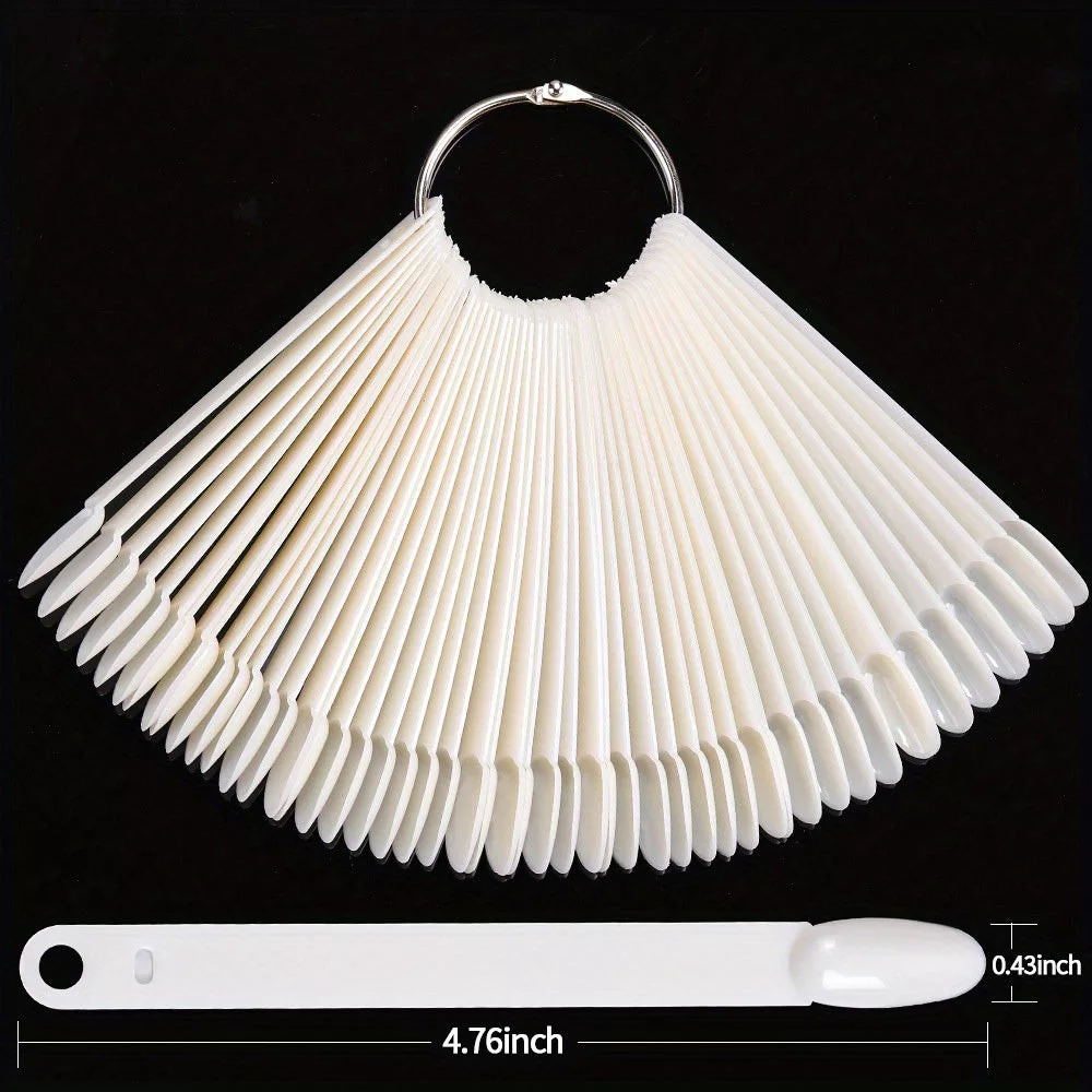 50 de unghii false pentru prezentare, mostre de unghii, paletă de culori pentru geluri, instrumente de practică manichiură