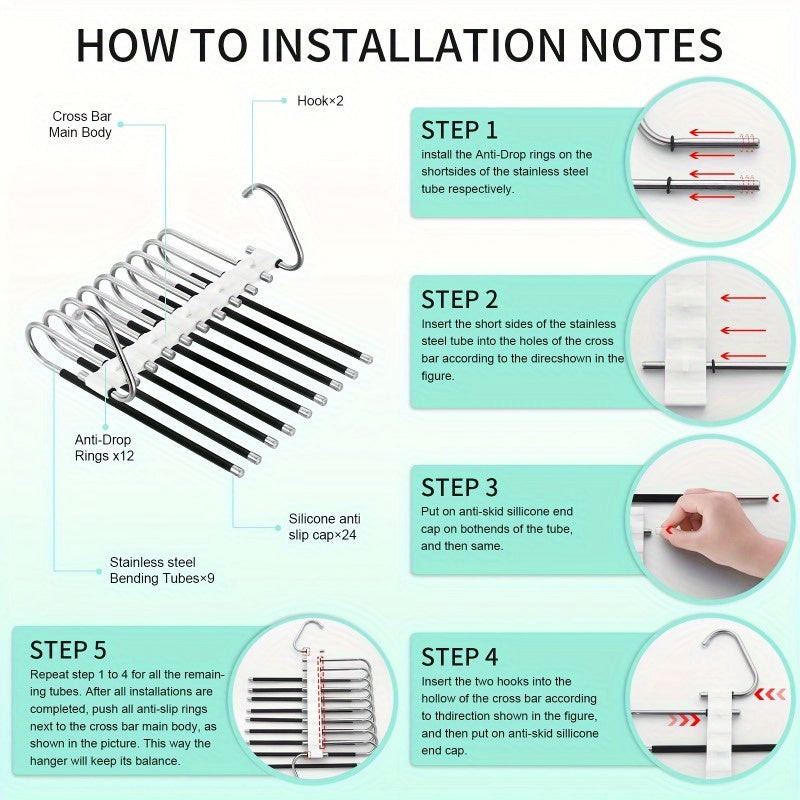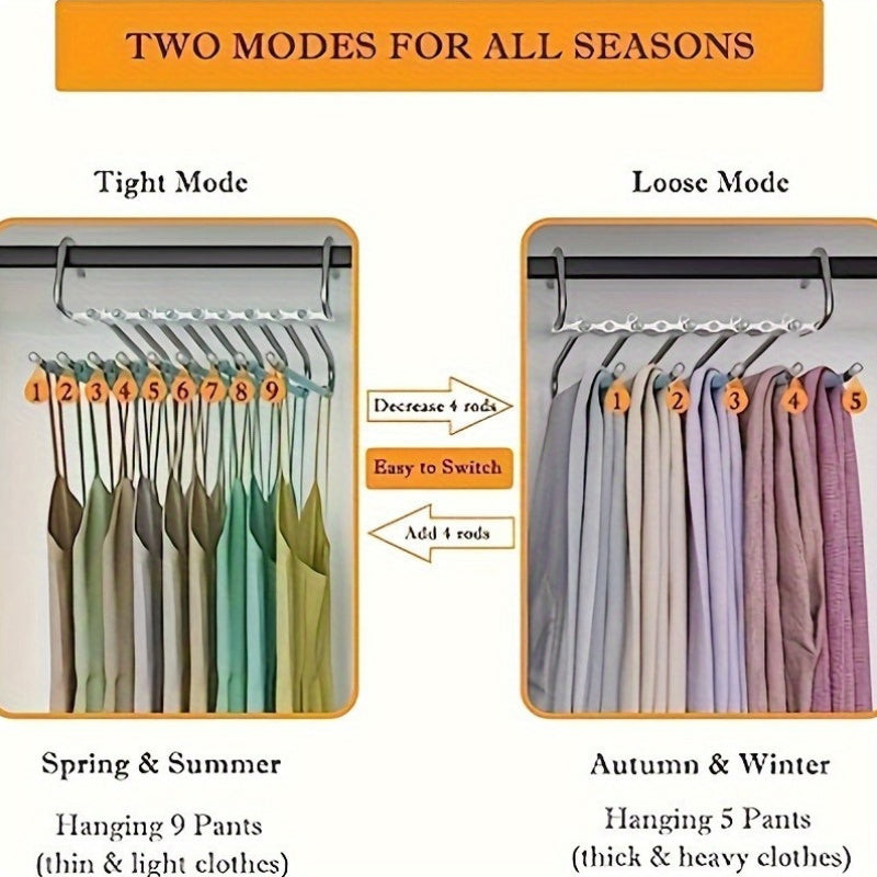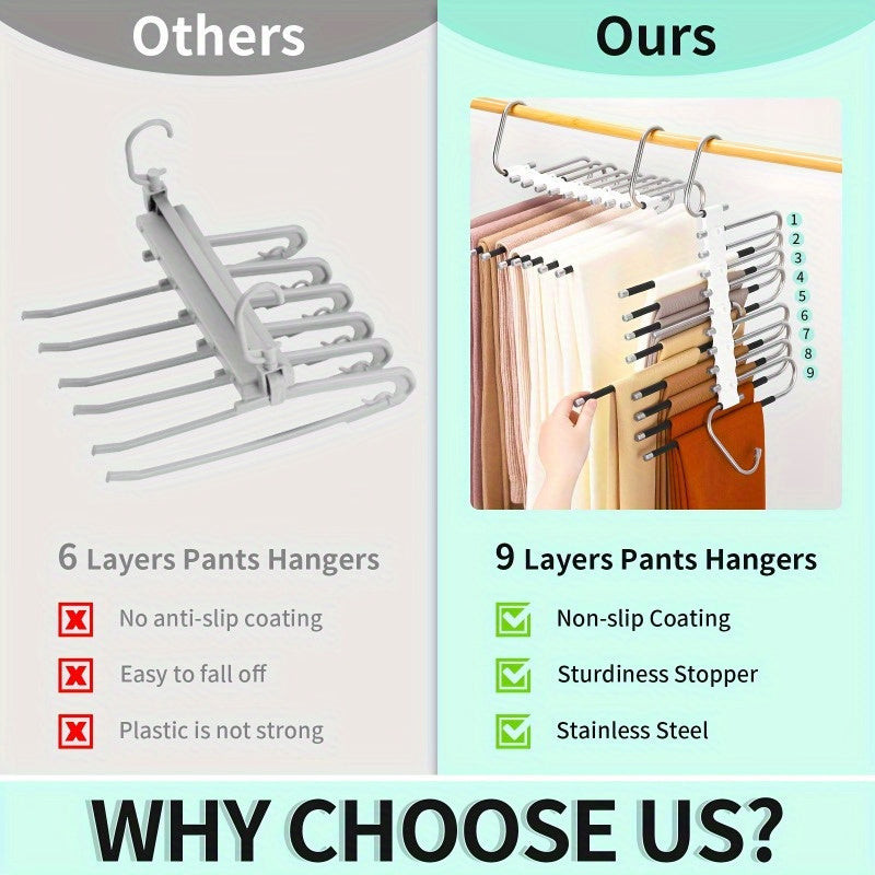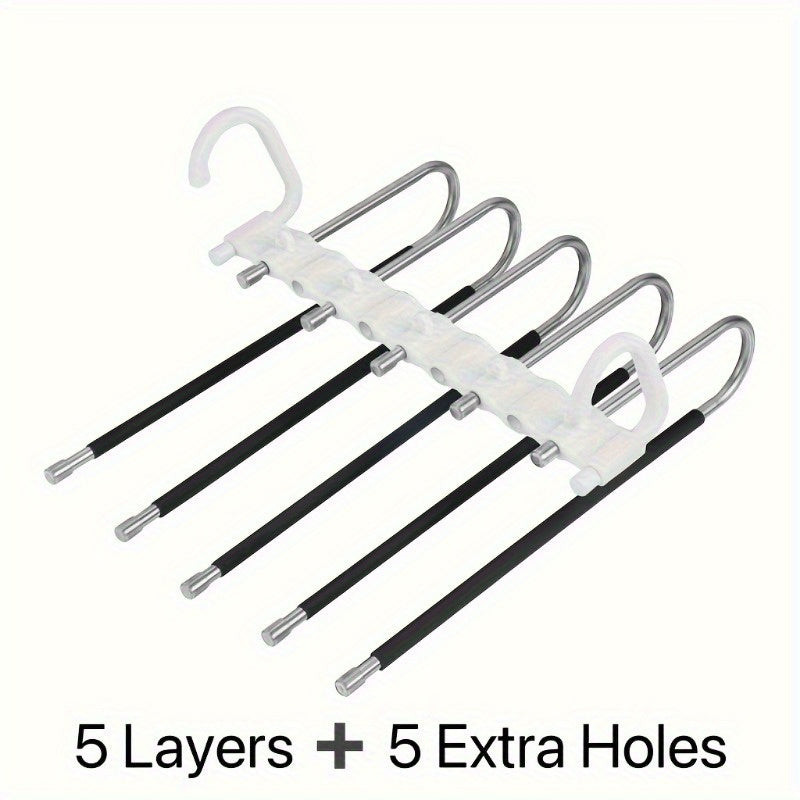 (Depozitare compactă) Dacă te-ai săturat de haosul constant din dulapul tău, acest suport pentru pantaloni din oțel inoxidabil cu 5 niveluri va deveni cel mai bun prieten al tău. Imaginează-ți că toți pantalonii tăi atârnă frumos organizați și, în sfârșit, ai loc și pentru alte lucruri! Acest suport pentru pantaloni nu este doar practic, ci și stilat, așa că dulapul tău va fi nu doar funcțional, ci și cool. Materialul durabil asigură rezistența pe termen lung, astfel că nu trebuie să-ți faci griji pentru uzura prematură.