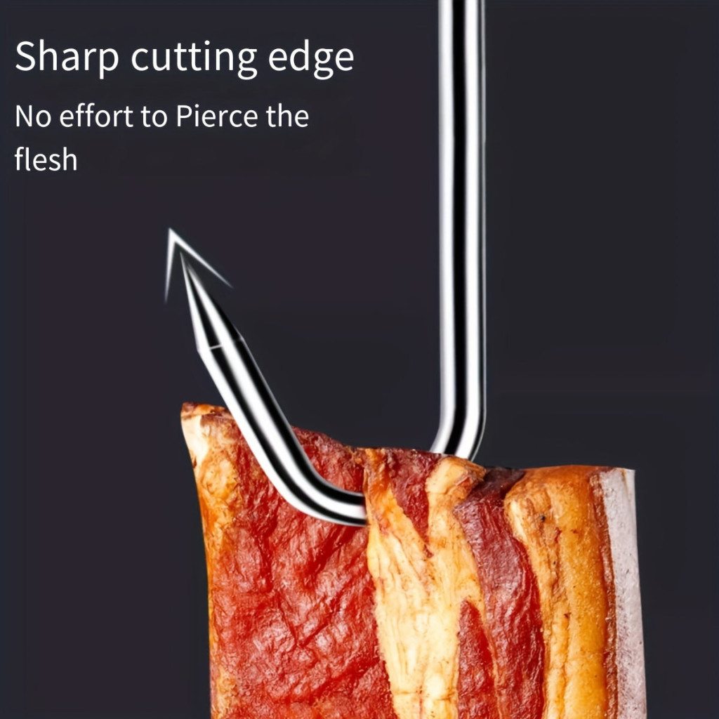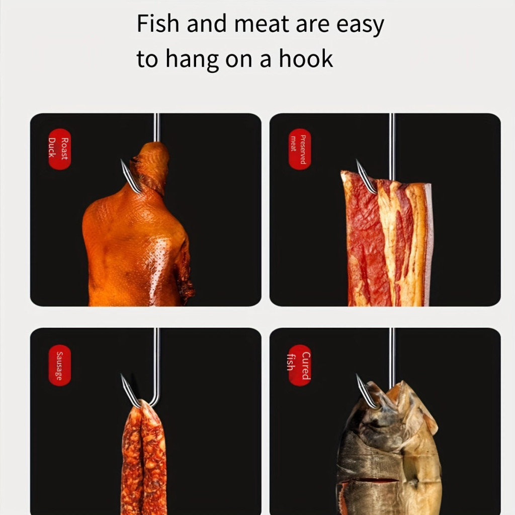 • (Dimensiune) Dimensiune compactă: Ideală pentru agățarea diferitelor tipuri de carne și alte alimente, asigurând o utilizare maximă a spațiului în bucătărie.