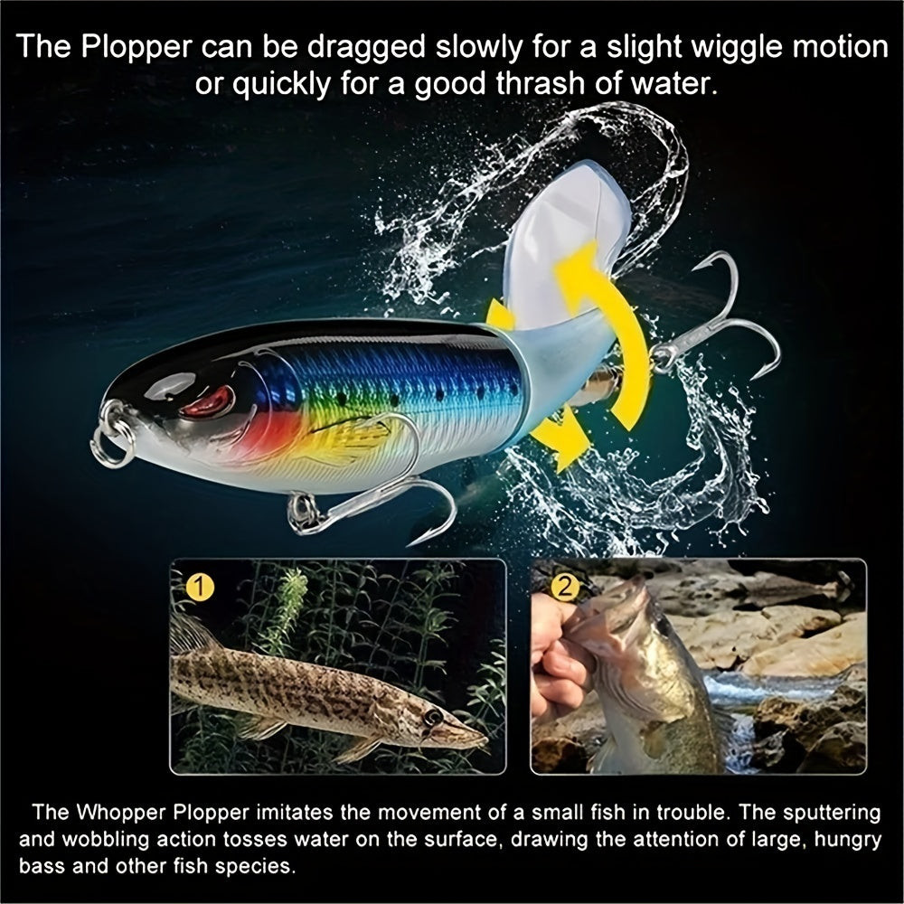 (Bucură-te de pescuit) Dacă ești pasionat de pescuit și cauți cea mai tare unealtă, acest năvod topwater este creat special pentru tine. Este echipat cu două cârlige triunghiulare, garantând că prinderea nu va rămâne doar un vis. Designul momelii este conceput să plutească la suprafața apei și să atragă peștii, ca și cum ar fi o delicatesă. Combinația de culori și mișcare o face pur și simplu irezistibilă pentru viețuitoarele acvatice.