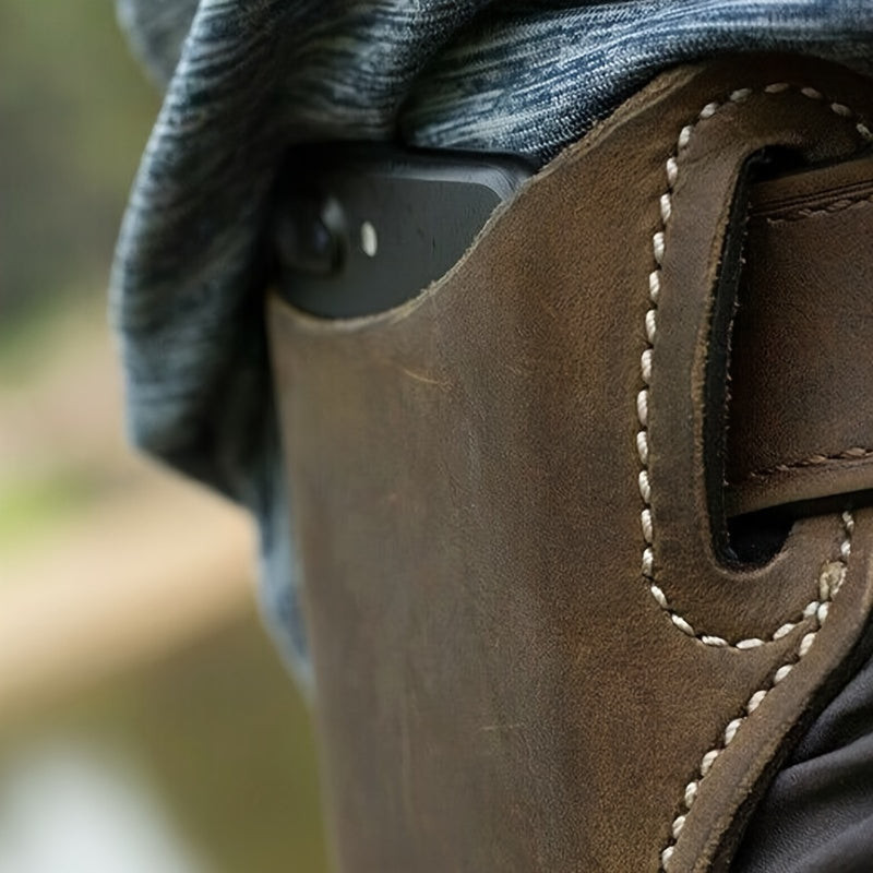 Acest suport de telefon din piele este un adevărat must-have dacă îți plac accesoriile stilate și practice. Este perfect pentru tine dacă ești mereu pe drum și nu vrei să-ți umpli buzunarele. Datorită designului care se poate prinde de curea, este super comod, pentru că toate lucrurile importante sunt la un loc, fără să te încurce nimic. Imaginează-ți că doar îl prinzi și ești gata să pleci, fie că e vorba de o plimbare relaxantă prin oraș sau de o excursie aventuroasă. Acest suport de telefon nu este doar util, dar datorită materialului din piele, arată incredibil de cool și cu siguranță îți va completa ținuta.