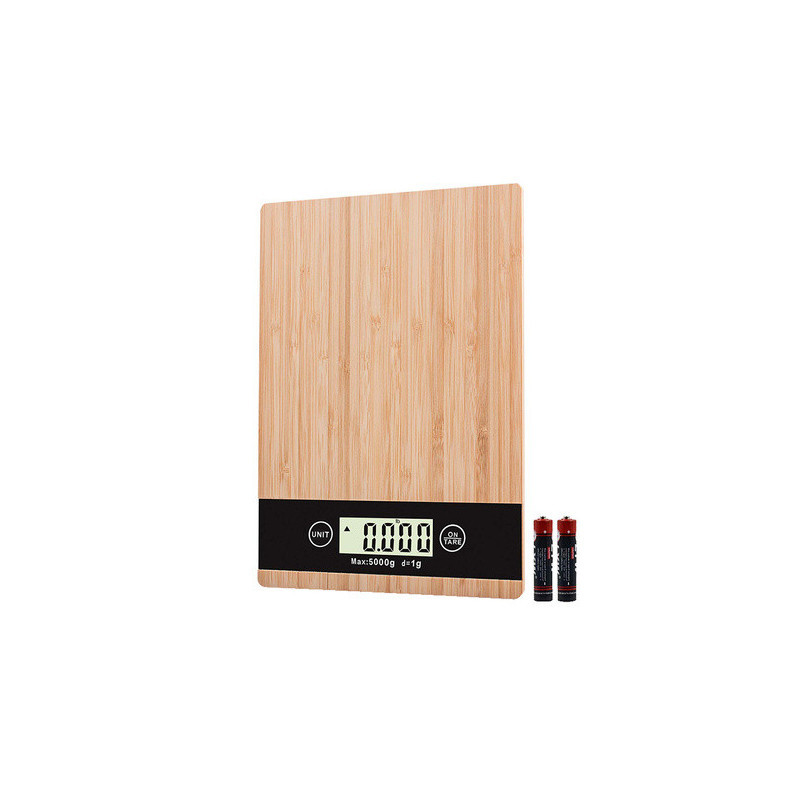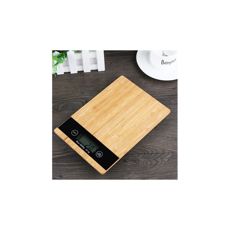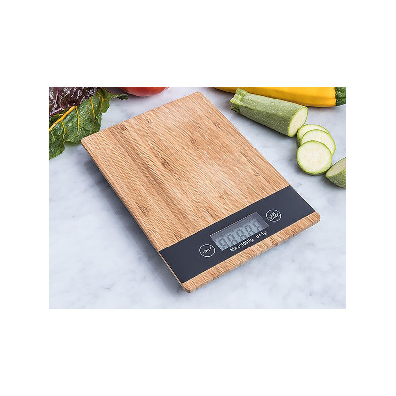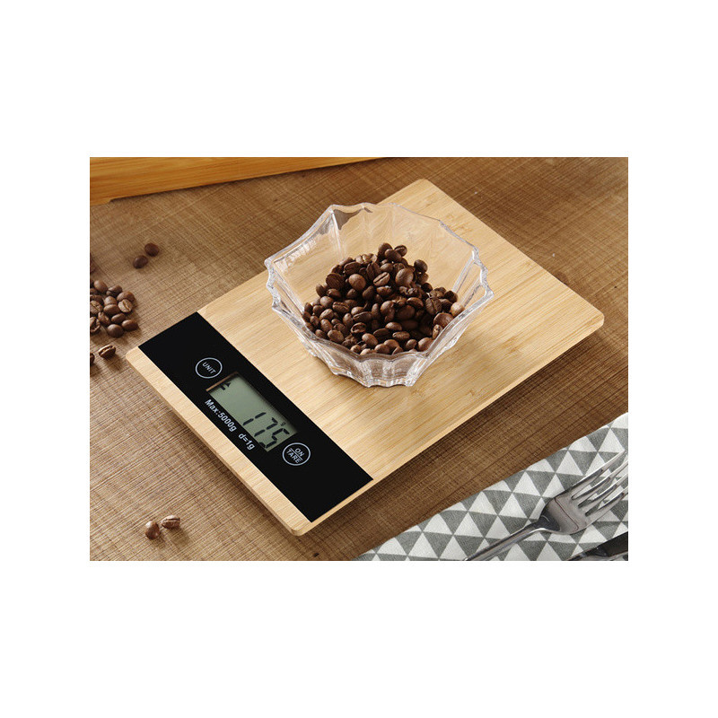 Balanță de bucătărie din bambus electronică cu afișaj LCD până la 5 kg