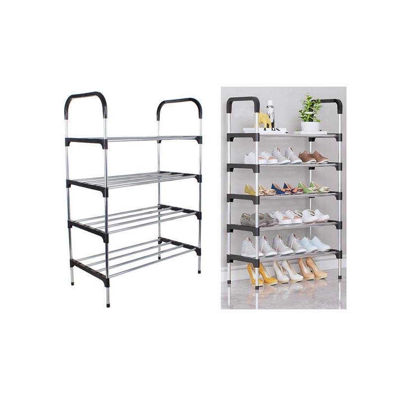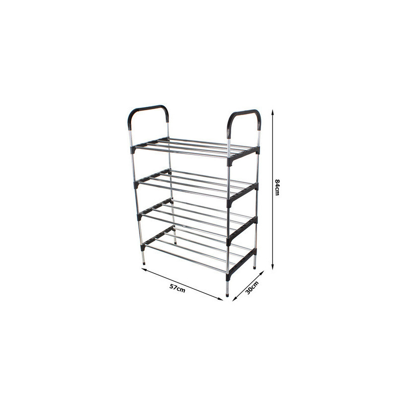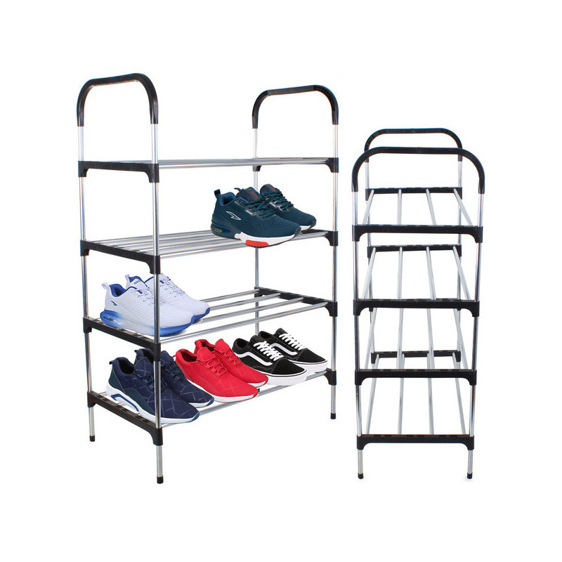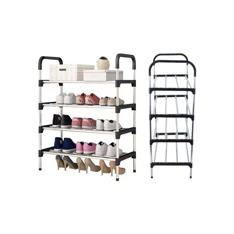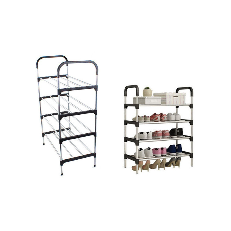 Suport de pantofi super ușor și stabil! Ideal pentru companii, magazine, birouri și locuințe. Poate depozita până la 12 perechi de pantofi! Suportul de pantofi este compus din patru niveluri și se asamblează foarte ușor. Stâlpii și barele transversale sunt fabricate din aluminiu. Nivelurile raftului pot fi adăugate sau eliminate după cum dorești. În plus, are un aspect foarte estetic, potrivindu-se cu orice stil de locuință.