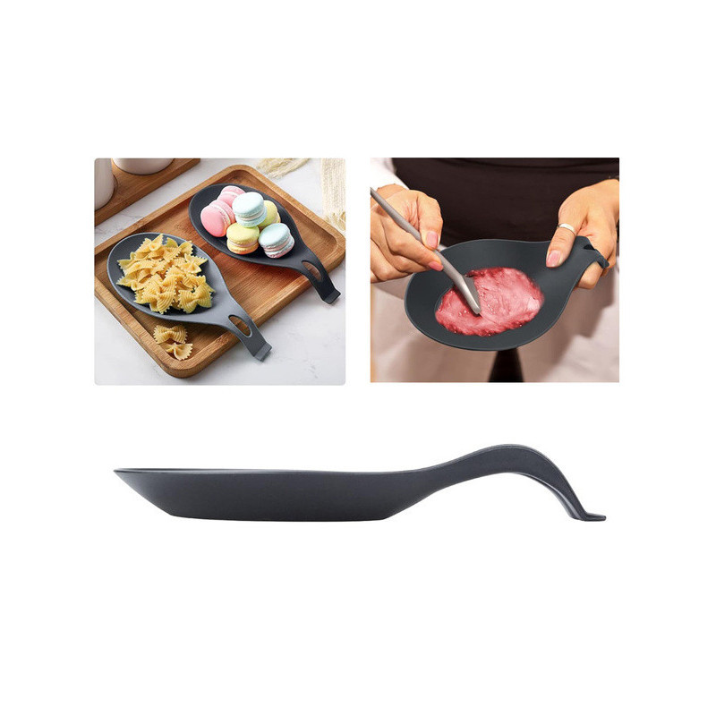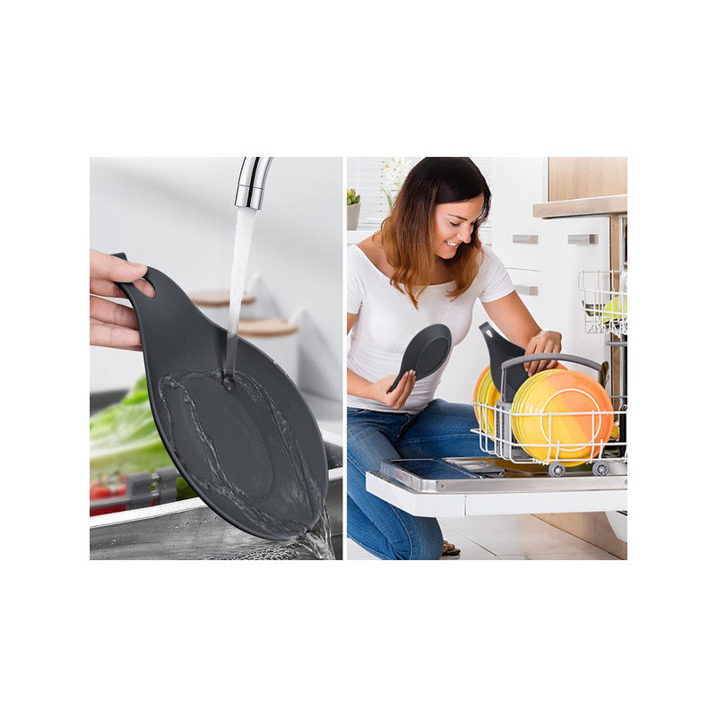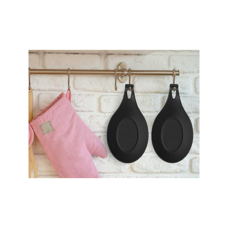 Această suport pentru linguri este deosebit de util în bucătărie, menținând ordinea! Folosește-l în timpul gătitului, când amesteci mâncarea cu lingura, și așază lingura pe tava de scurgere pentru a evita ca sosurile și supele să ajungă direct pe blatul de bucătărie. Este realizat din silicon flexibil, care nu absoarbe mirosurile și se curăță ușor. În plus, are o deschidere care îți permite să-l agăți atunci când nu îl folosești.