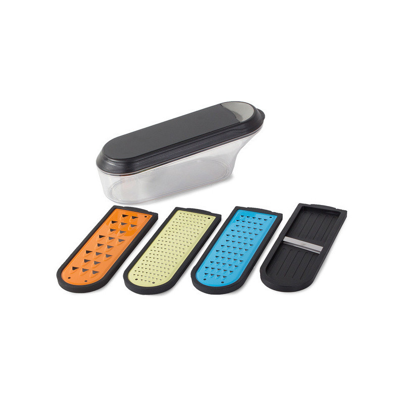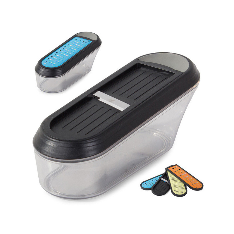 Acest răzătoare multifuncțională pentru legume și fructe îți simplifică și îți face mai confortabilă munca în bucătărie! Taie și răzuiește perfect legumele și fructele pentru o salată delicioasă sau alte preparate preferate. Recipientul de plastic de 600 ml inclus îți permite să depozitezi cu ușurință fructele și legumele mărunțite. Răzătoarea este echipată cu patru lame diferite: