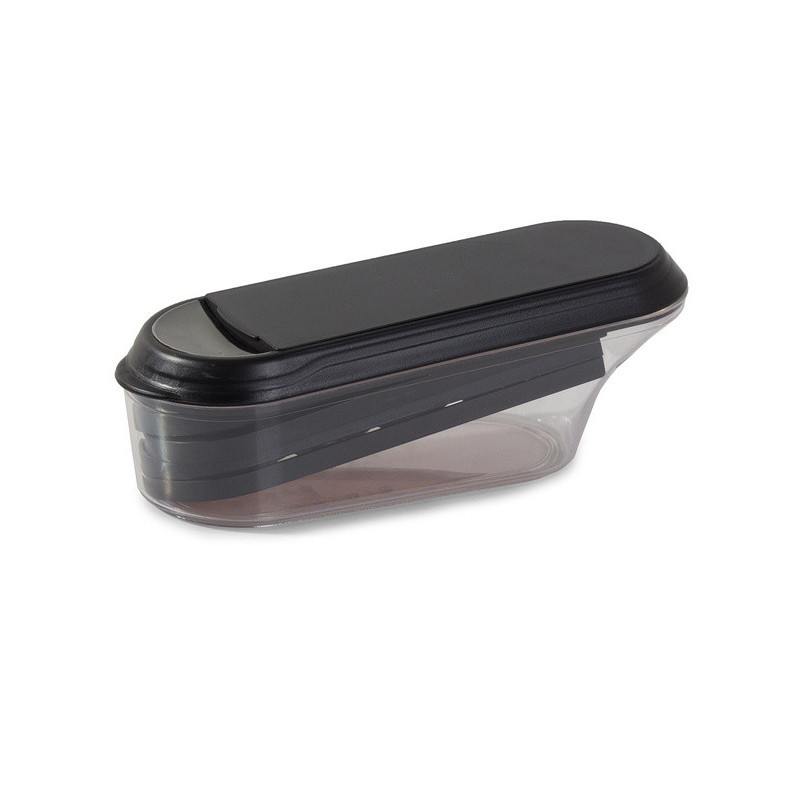 • Culoare: recipient transparent cu capac negru, răzători colorate
