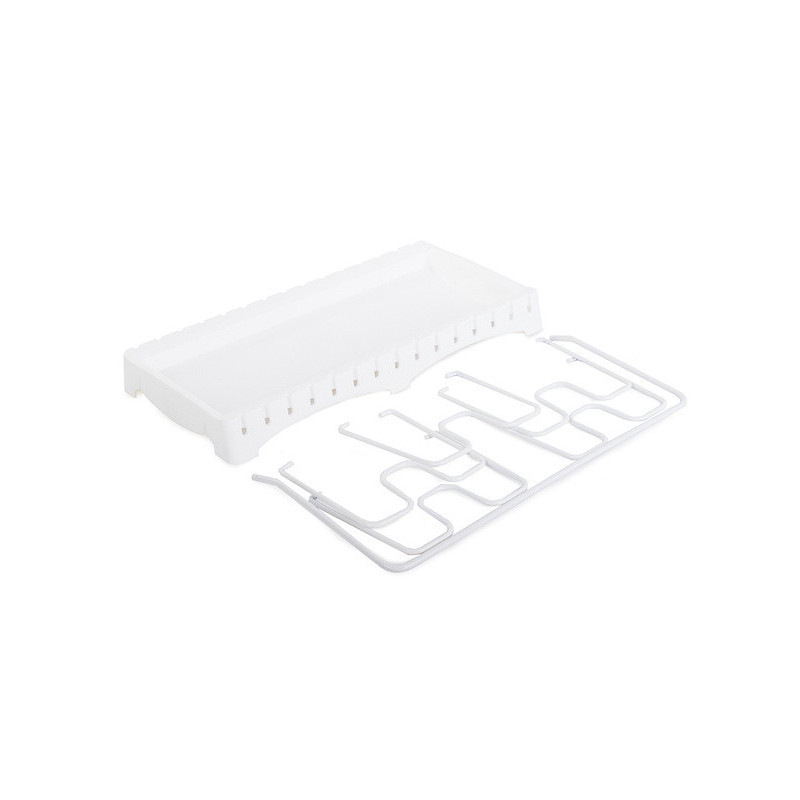 Dacă îți place să ai bucătăria ordonată și cauți soluții practice pentru depozitarea accesoriilor de bucătărie, acest suport de uscare este alegerea perfectă pentru tine! Datorită materialului ușor de curățat, bucătăria ta va rămâne mereu frumoasă și ordonată. Datorită brațelor ajustabile, poți configura liber compartimentele, astfel încât fiecare accesoriu să aibă locul său. Iar cu ajutorul sistemului practic de scurgere, poți usca rapid vasele și accesoriile după spălare. Cumpără-l acum și fă-ți viața mai ușoară în bucătărie!