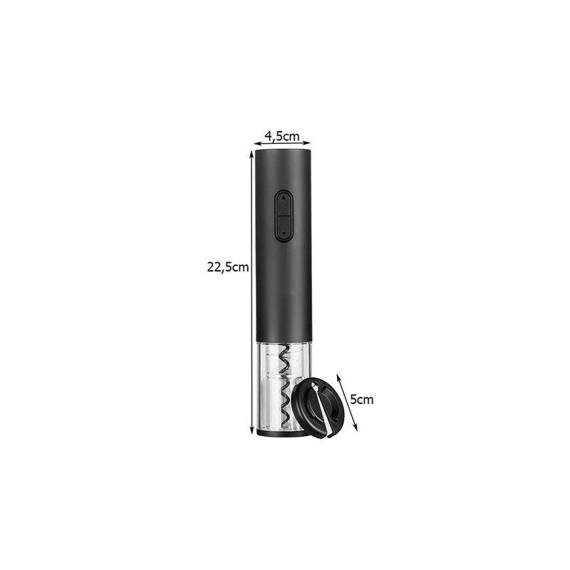 Tirbușonul electric este un instrument minunat pe care îl vei folosi atât în bucătărie, cât și în afara ei. Uită de lupta obositoare cu deschizătoarele tradiționale, poți deschide vinul preferat în doar câteva secunde. Acest tirbușon este o idee de cadou grozavă pentru cineva drag. Este foarte util pentru serile de film de iarnă acasă. Deschizătorul electric este extrem de ușor de utilizat, trebuie doar să apeși butonul și sticla se va deschide în 5-7 secunde. Tirbușonul funcționează cu 4 baterii AA. Fabricat din materiale de înaltă calitate, are un design stilat și elegant. Arată foarte bine și elegant pe o masă de bucătărie sau pe un blat. Setul include și un deschizător de folie.