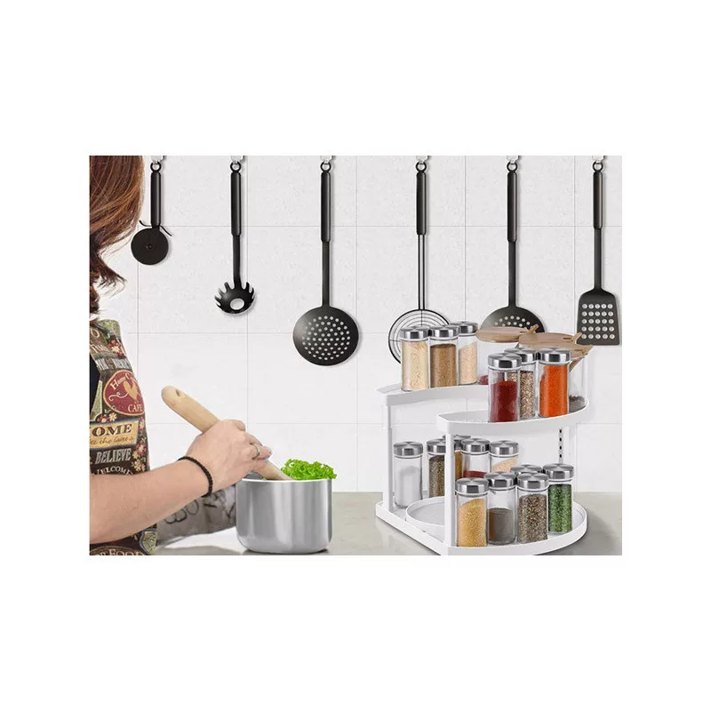 Acest Suport Rotativ pentru Condimente de Bucătărie este accesoriul perfect pentru orice bucătărie a generației Z! Te ajută să menții ordinea între condimente, îți oferă acces ușor la condimentele dorite și este și stilat! Nu rata acest accesoriu practic și la modă pentru bucătăria ta!