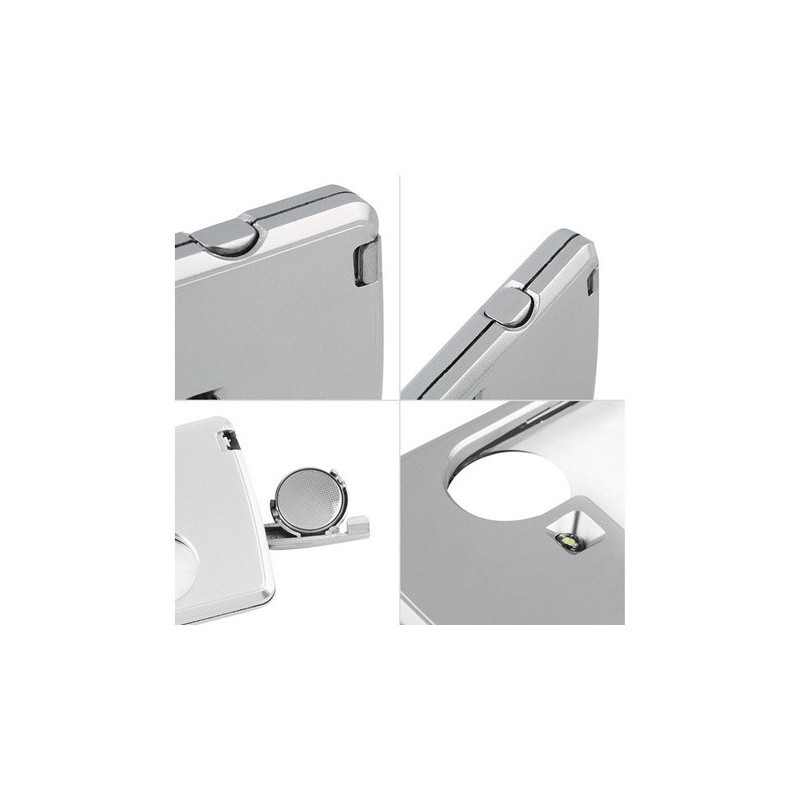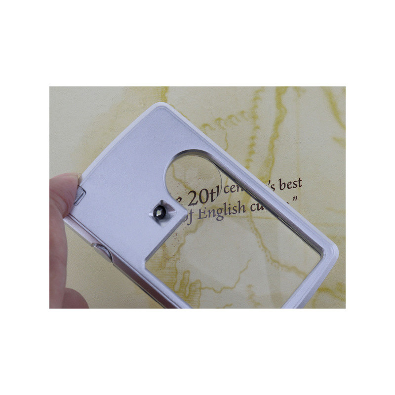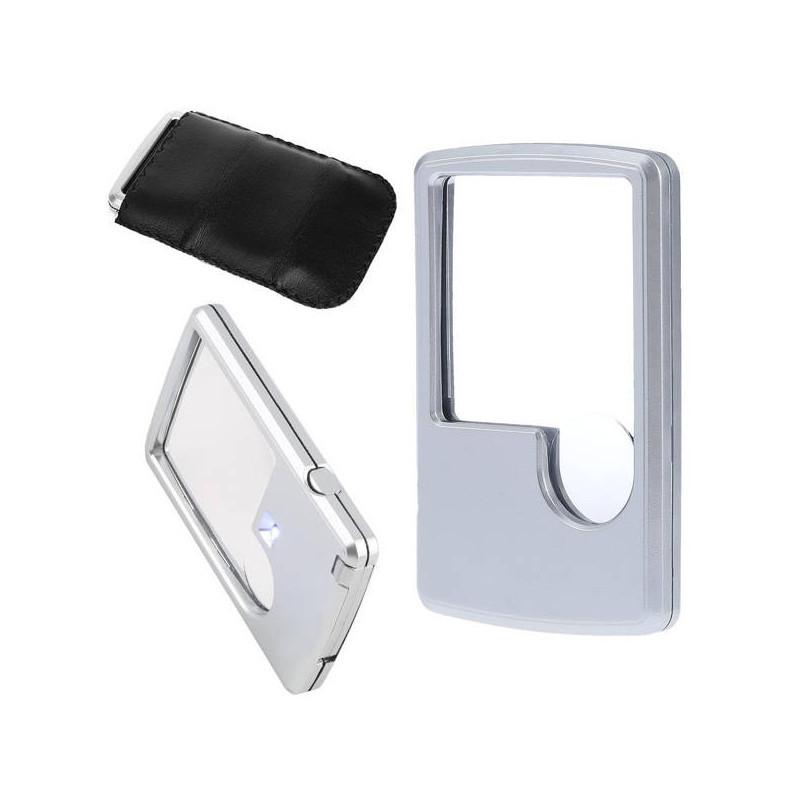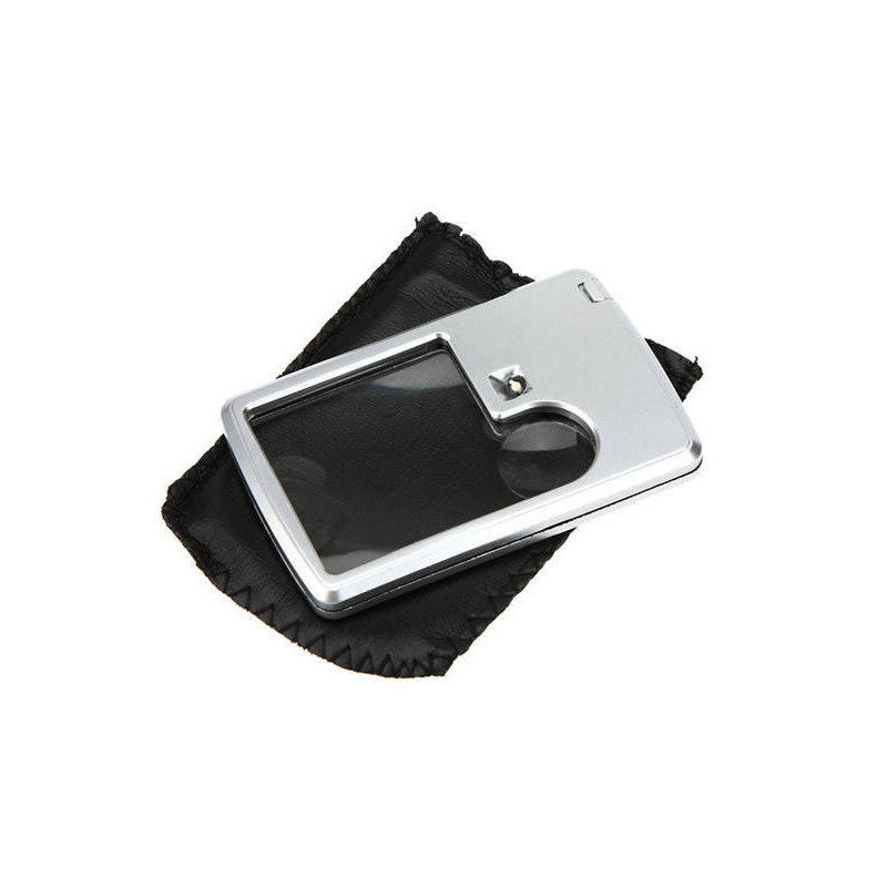 Îmbunătățește-ți viața cu această lupă de buzunar! Ideală pentru fiecare zi, perfectă pentru bijutieri, numismați, tehnicieni de service electronic, etc. Lupa este excelentă pentru vizualizarea bijuteriilor, timbrelor, monedelor sau pentru citirea de zi cu zi. Datorită iluminării LED integrate, imaginea este foarte clară și ușor de citit. În plus, lupa vine cu un toc practic pentru a o proteja atunci când o porți în buzunar sau în geantă.