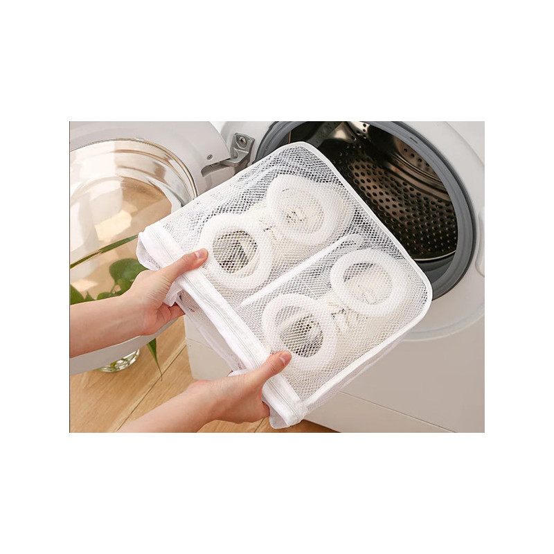Sacul de spălat din plasă este soluția ideală pentru protejarea încălțămintei și a pieselor de îmbrăcăminte mai mici în timpul spălării. Protejează-ți încălțămintea de deteriorările mașinii de spălat și de șifonare cu acest sac de spălat practic și ușor de depozitat!