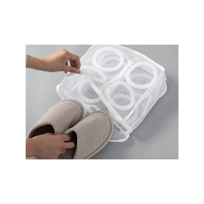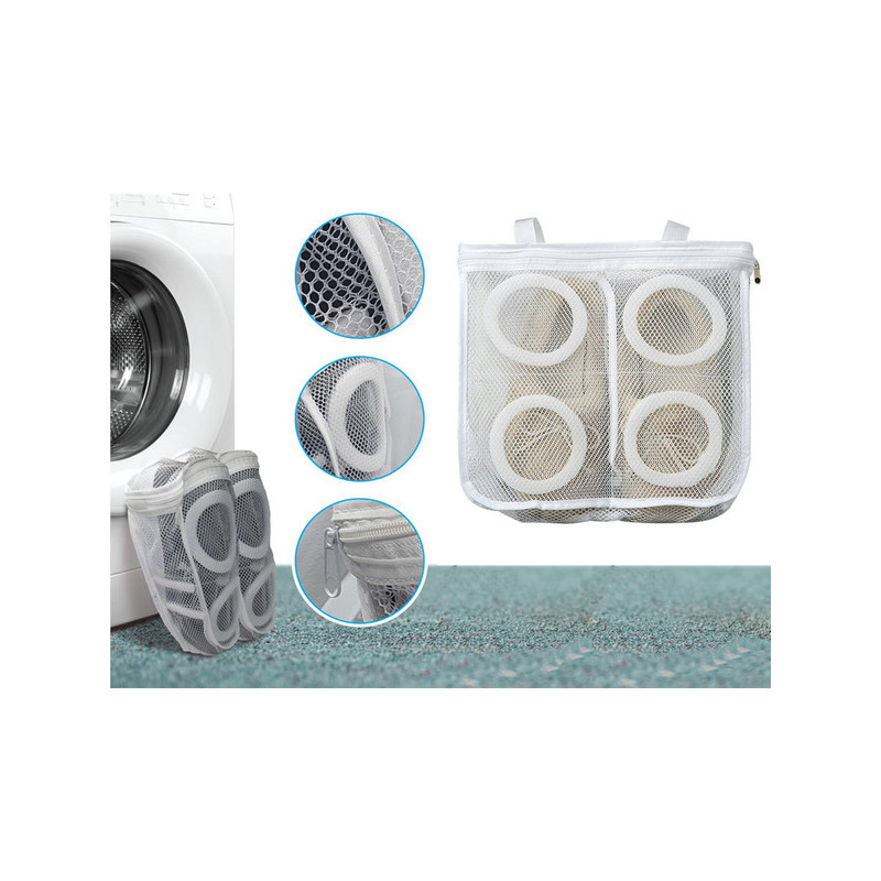 SACUL DE SPĂLAT DIN PLASĂ PENTRU ÎNCĂLȚĂMINTE CU FERMOAR PENTRU LENJERIE ESTE SPAȚIOS PENTRU ÎNCĂLȚĂMINTEA COPIILOR. Sacul de spălat îți protejează lucrurile de a se șifona în timpul spălării. Este un accesoriu practic care ajută la protejarea mașinii de spălat și a încălțămintei tale în timpul spălării. Previne amestecarea pieselor de îmbrăcăminte mai mici, a lenjeriei sau a șosetelor. Când le scoți din mașina de spălat, acestea vor fi încă complete și ordonate, economisindu-ți timp prețios. Încălțămintea nu se freacă de alte părți ale mașinii de spălat și nu se deteriorează din cauza efectelor mecanice în timpul ciclului de spălare. Sacul previne încurcarea șireturilor și protejează încălțămintea de șifonare. Spălarea în sacul de spălat încălțăminte este deosebit de utilă pentru pantofii sport, care sunt adesea mai pretențioși în ceea ce privește curățarea. Materialul sacului este din plasă moale și groasă, care se usucă rapid. Elementele din spumă oferă protecție suplimentară pentru încălțămintea spălată. Sacul poate fi folosit și ca plasă de uscare pentru încălțămintea spălată. După spălare, poate fi agățat pe un cuier într-un loc aerisit, ceea ce accelerează uscarea încălțămintei. După spălare, sacul poate fi ușor depozitat într-un loc potrivit. În plus, sacul are un fermoar care permite deschiderea sau închiderea rapidă.