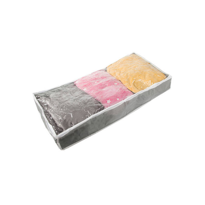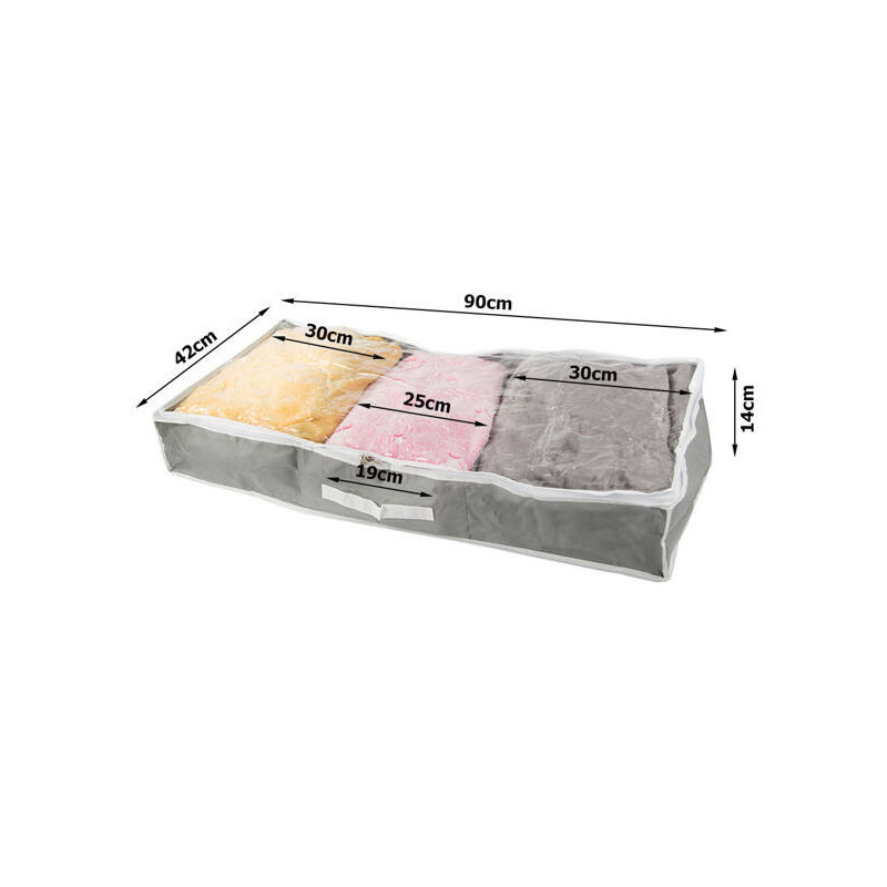 Îți place să îți păstrezi garderoba organizată? Ai un apartament mic și vrei să economisești spațiu? Nu știi unde să depozitezi lucrurile utile sau inutile? Pentru toate aceste probleme, soluția este un organizator versatil cu fermoar, în care poți depozita haine, pături, cărți, jucării, pantofi și multe altele. Poți să împingi cutia sub pat sau la baza garderobei. Este fabricată din material respirabil. Cutia de depozitare are mânere practice pe ambele părți, pentru a o putea scoate ușor din garderobă.