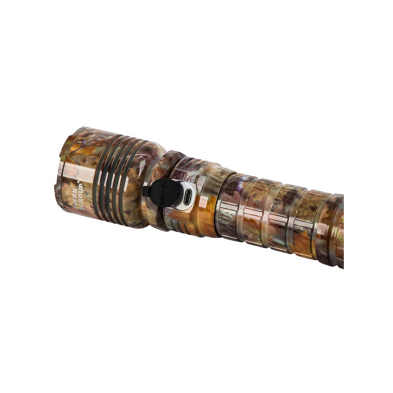 Funcția de zoom - distanța focală a luminii este reglabilă continuu cu ajutorul lentilei de focalizare. Acest lucru îți permite să setezi un fascicul de lumină puternic și concentrat cu o rază de acțiune de până la 1000m sau să iluminezi o zonă largă. Aceste caracteristici fac lanterna extrem de potrivită pentru orice teren.