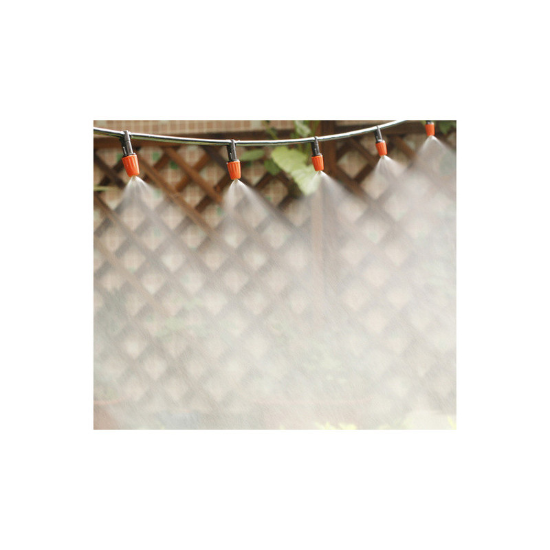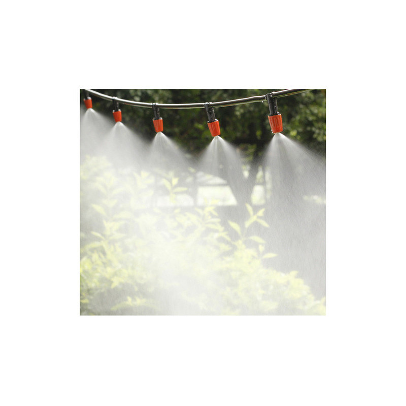 ☀️ Cortina de apă oferă un efect plăcut de răcorire în cele mai fierbinți zile. Instalată într-un loc potrivit, cum ar fi sub o terasă sau umbrelă, reduce eficient temperatura ambientală cu până la 10-12 grade. Pulverizarea cu apă elimină, de asemenea, impuritățile din aer și ține la distanță insectele zburătoare. Este excelentă și pentru udarea plantelor, fiind perfectă pentru grădină. Datorită unghiului de pulverizare reglabil, poți uda eficient plantele, de exemplu, în tunelul din grădină. Conectează simplu furtunul de apă, iar sistemul de irigare pornește automat și începe pulverizarea. Nu consumă energie electrică. ☀️