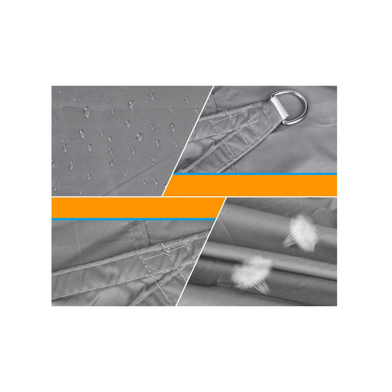 Poți monta prelata în orice combinație, în funcție de nevoile tale și de poziția razelor solare. Suporturile puternice și întărite, împreună cu frânghiile de fixare incluse, facilitează instalarea.