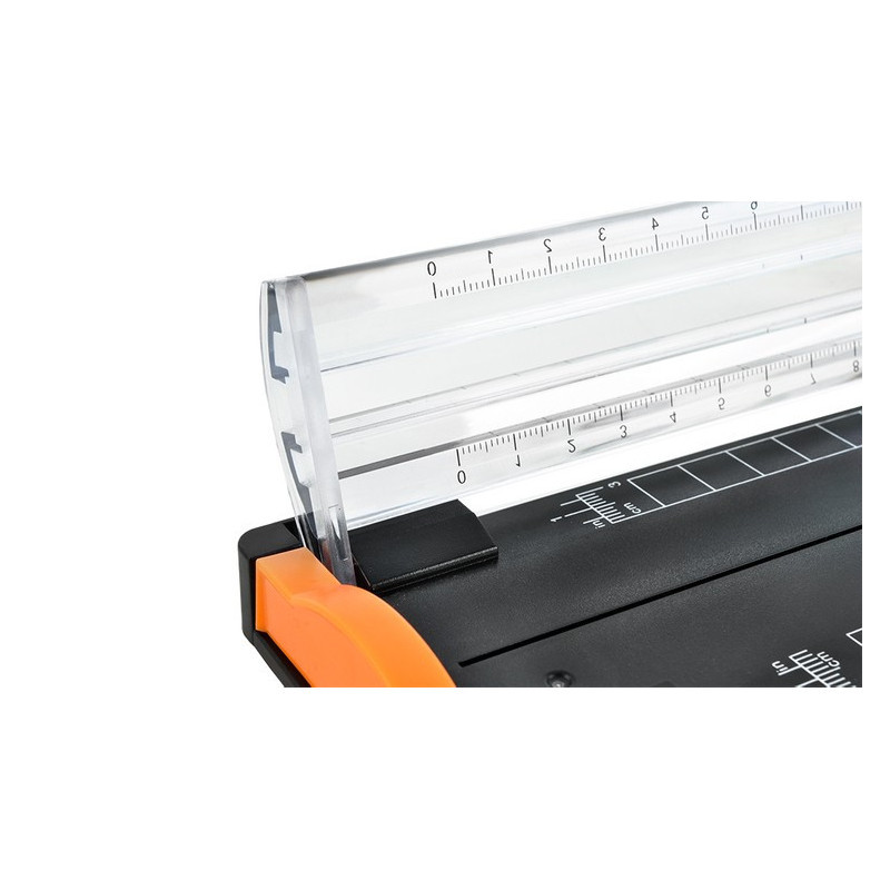 Tăiere precisă: Scala în centimetri și inci, precum și grila permit plasarea precisă a hârtiei înainte de tăiere.