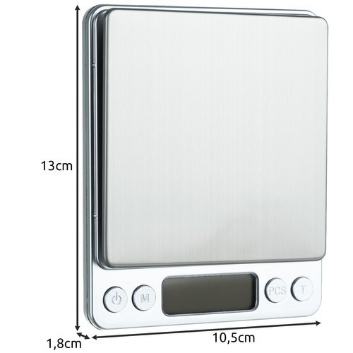 • SPECIFICAȚII - interval de măsurare: 0-0,5 kg; precizie de măsurare: 0,01 g; unități de măsură: g/oz/ozt/dwz/ct/gn/tl; Material: oțel inoxidabil, carcasă ABS; Afișaj: LCD cu iluminare de fundal albastră; Alimentare: 2 x baterii AAA (incluse); Dimensiuni cântar: 13x10,5x1,8 cm; Dimensiuni bol: 10x10 cm; Greutate: 205 g; Greutate ambalată: 234 g.